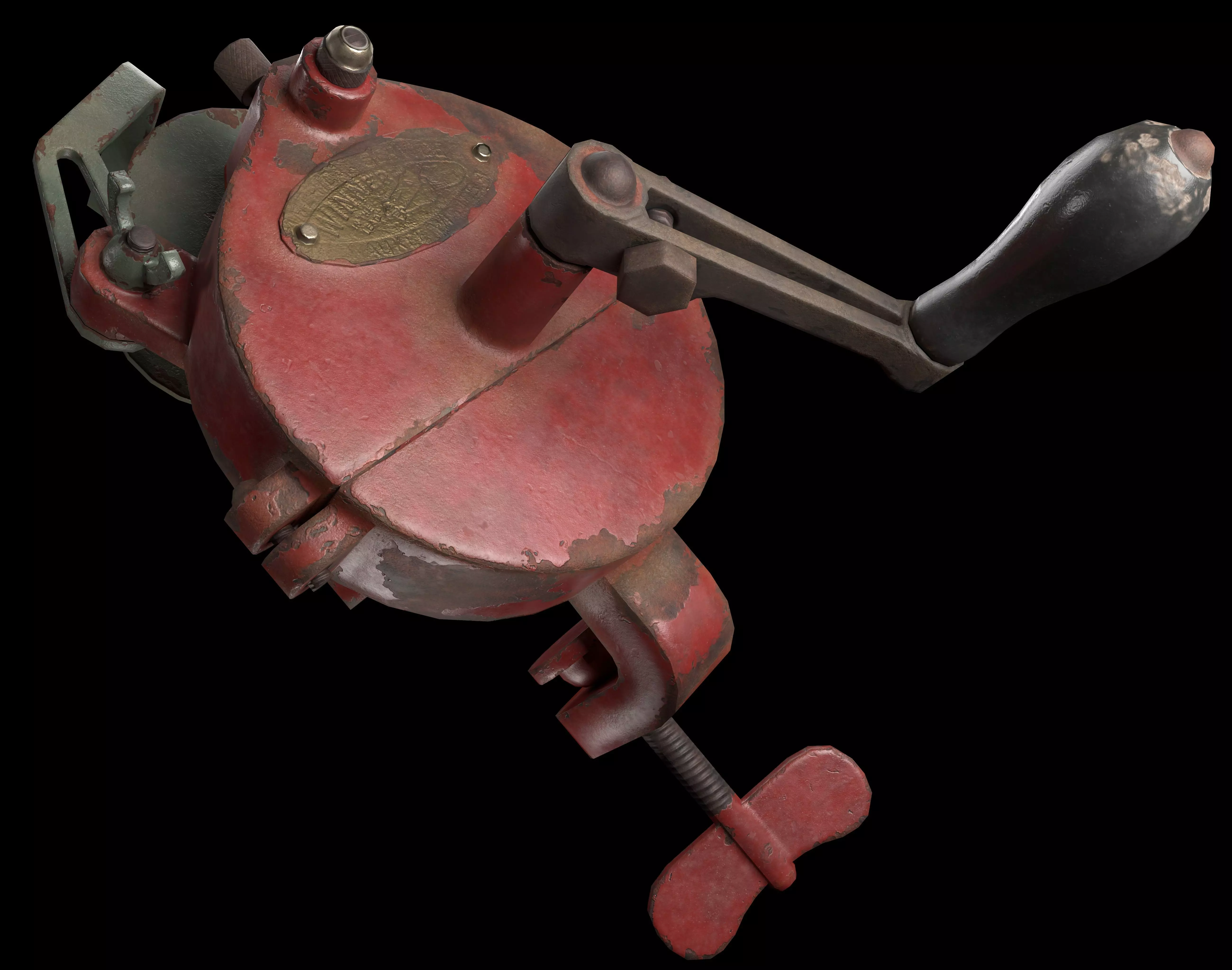 Hand crank bench grinder is a high quality, realistic, low-poly model. Comes with detailed 4096 textures. The single material is ready for PBR rendering. Final images rendered with Marmoset