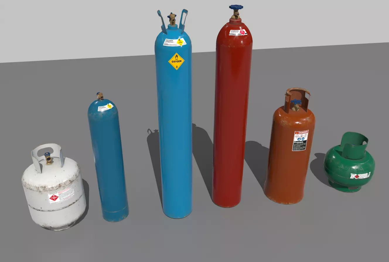 Industrial Gas Cylinders Pack 1 Low-poly 3D model