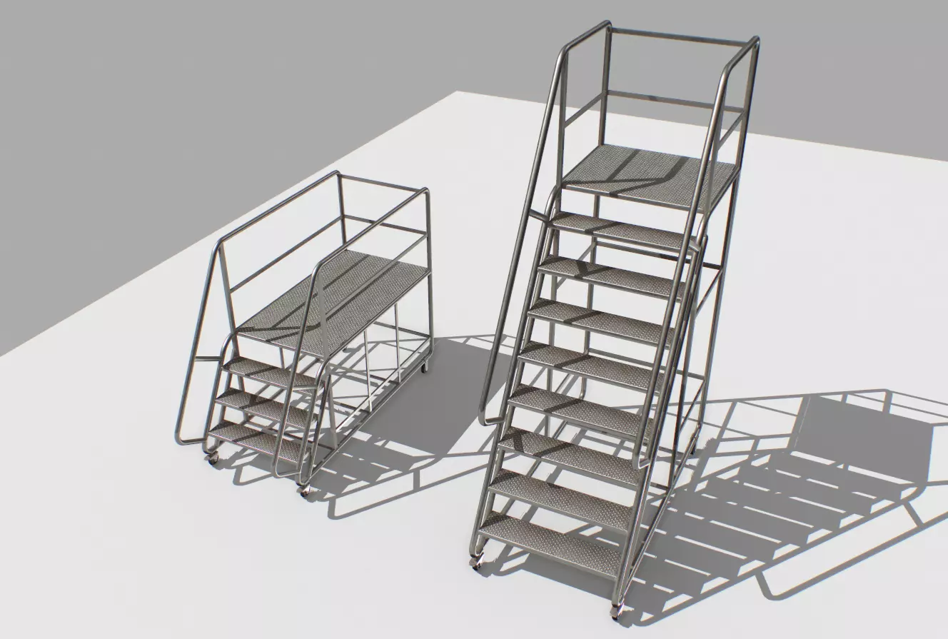 Industrial mobile stair based in real one. Real scale. Comes with 4096x PBR textures including Albedo, Normal, Metalness, Smoothness, Roughness and AO.