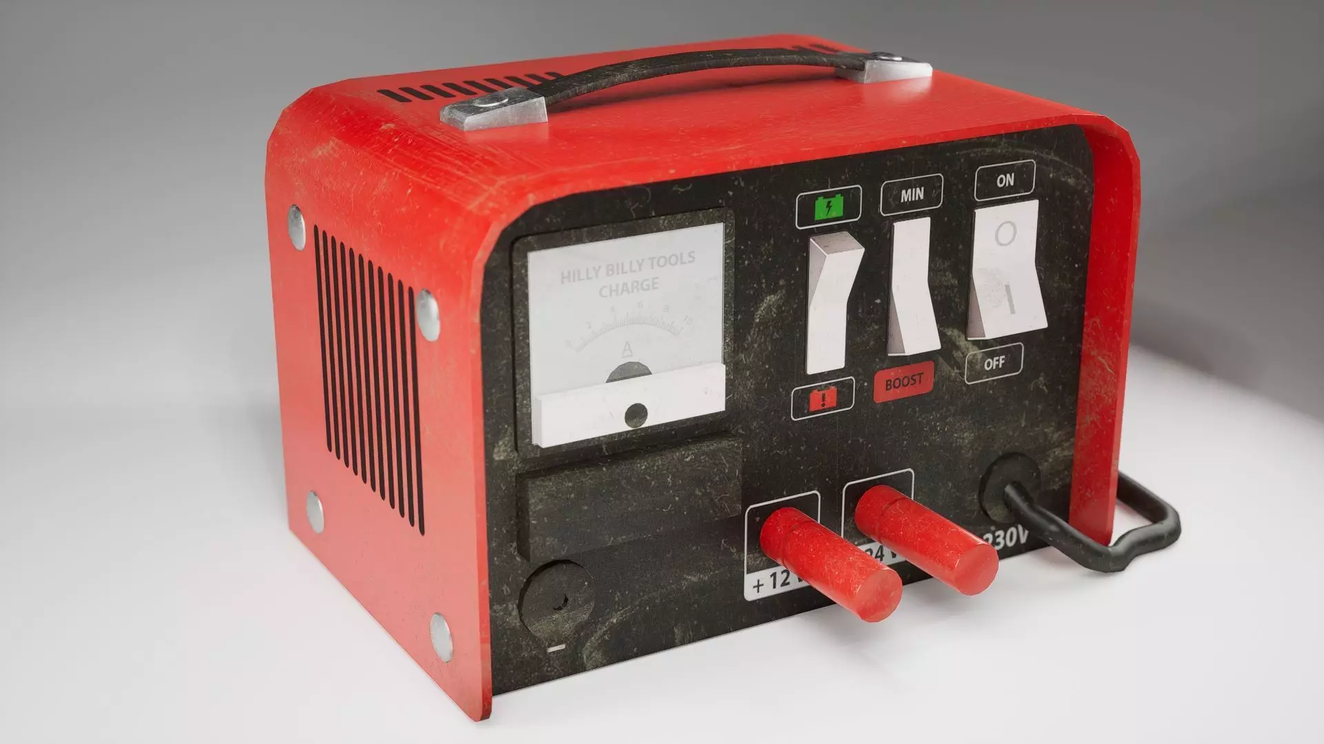 Industry Battery charger for car battery no clamps dirt version Low-poly 3D model