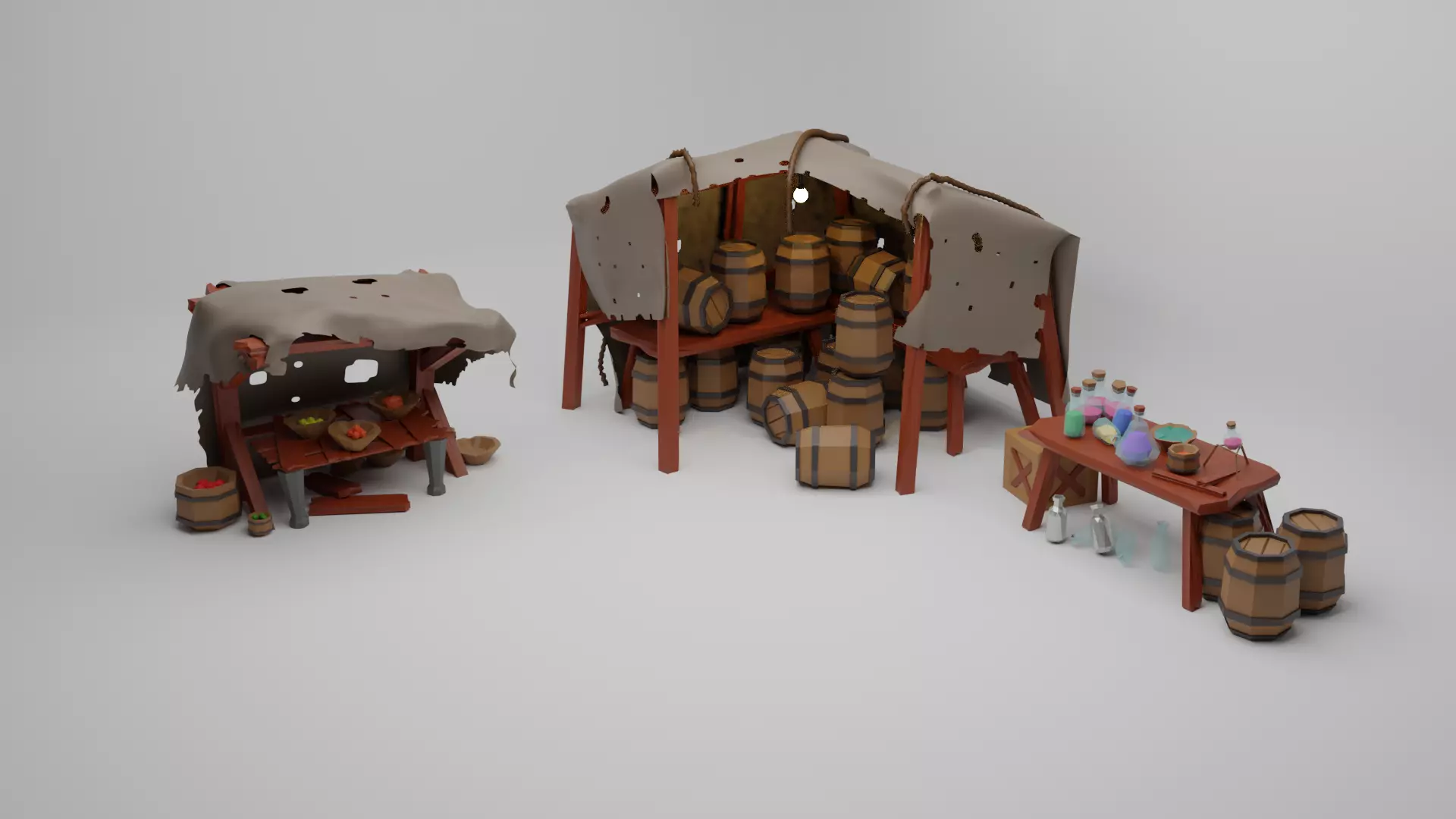 Low-Poly Street Market Assets for Games Low-poly 3D model