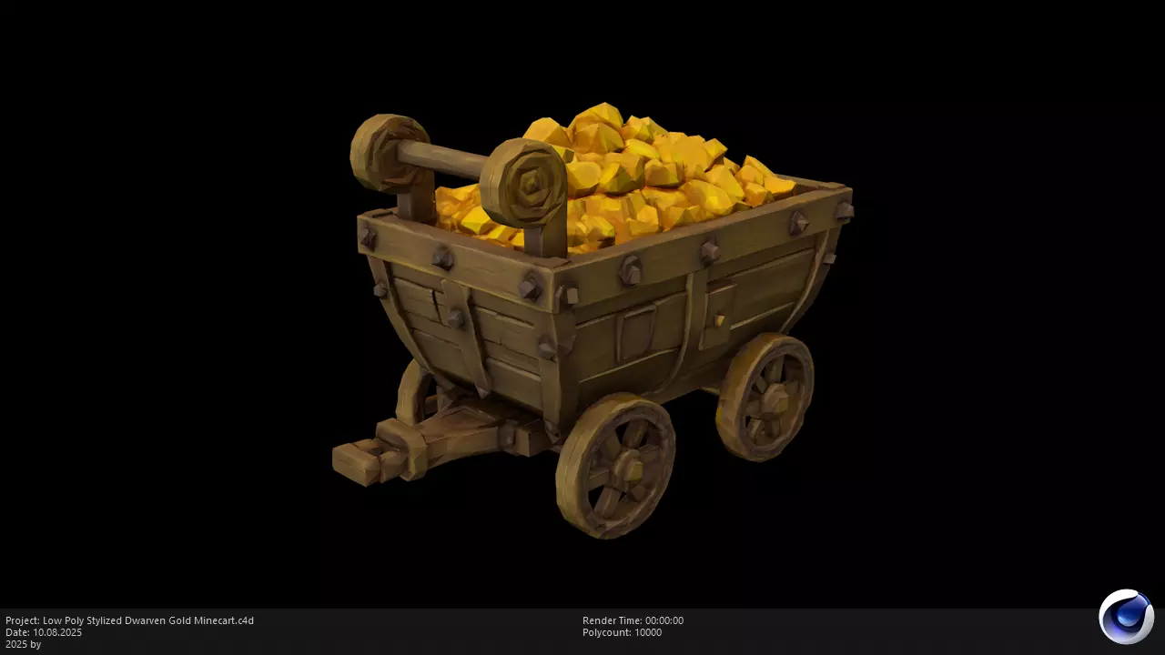 A stylized 3D model of a rustic minecart overflowing with gold nuggets. This asset is perfect for fantasy, RPG, or stylized environments, particularly for mining or dungeon themes. The model is low-poly and game-ready, featuring a hand-painted texture.