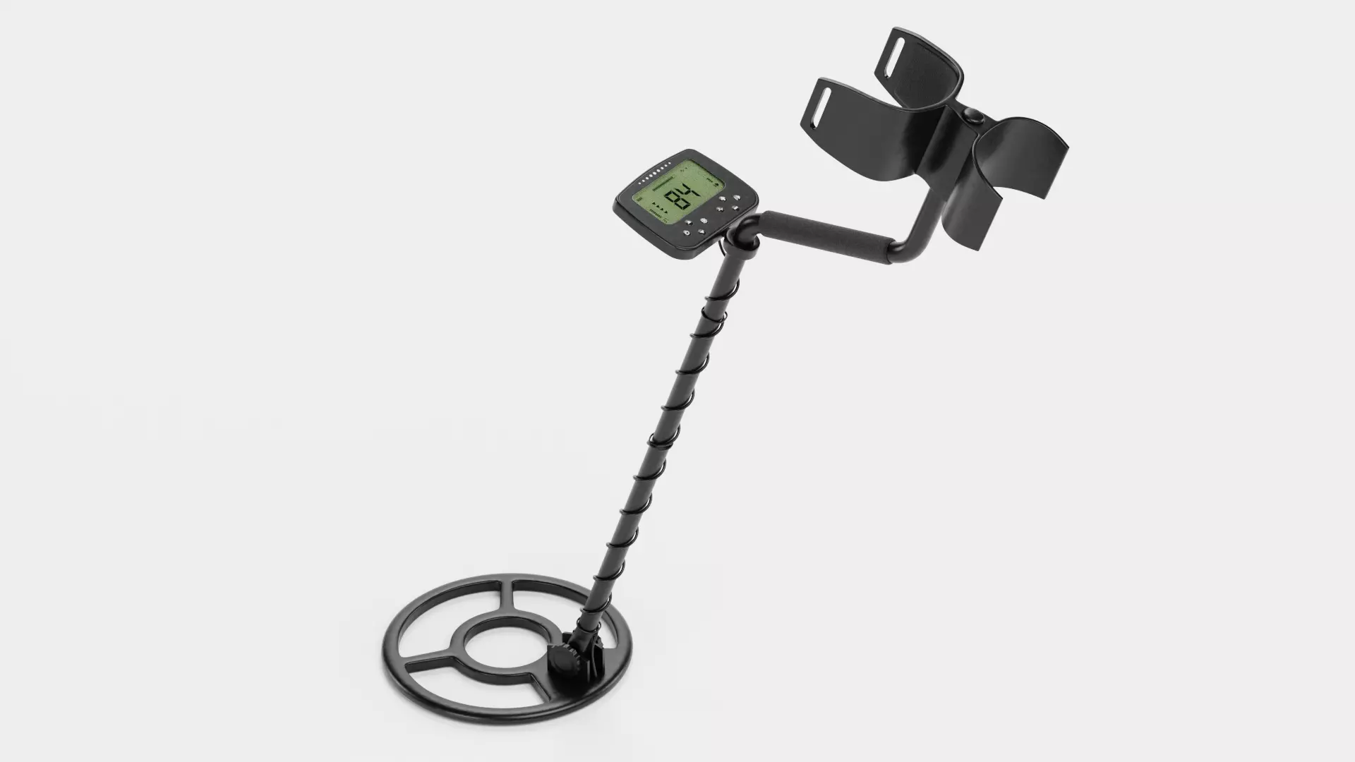 A clean and fully detailed metal detector designed as a professional ground scanning device with a factory-fresh finish. The model features a structured control box with a readable digital LCD interface, ergonomic handle, and a precisely shaped search coil. All components are clearly defined for functional readability in close-up and mid-range shots. The neutral material finish keeps the asset suitable for a wide range of environments, including exploration scenes, archaeological setups, and simulation-based projects.