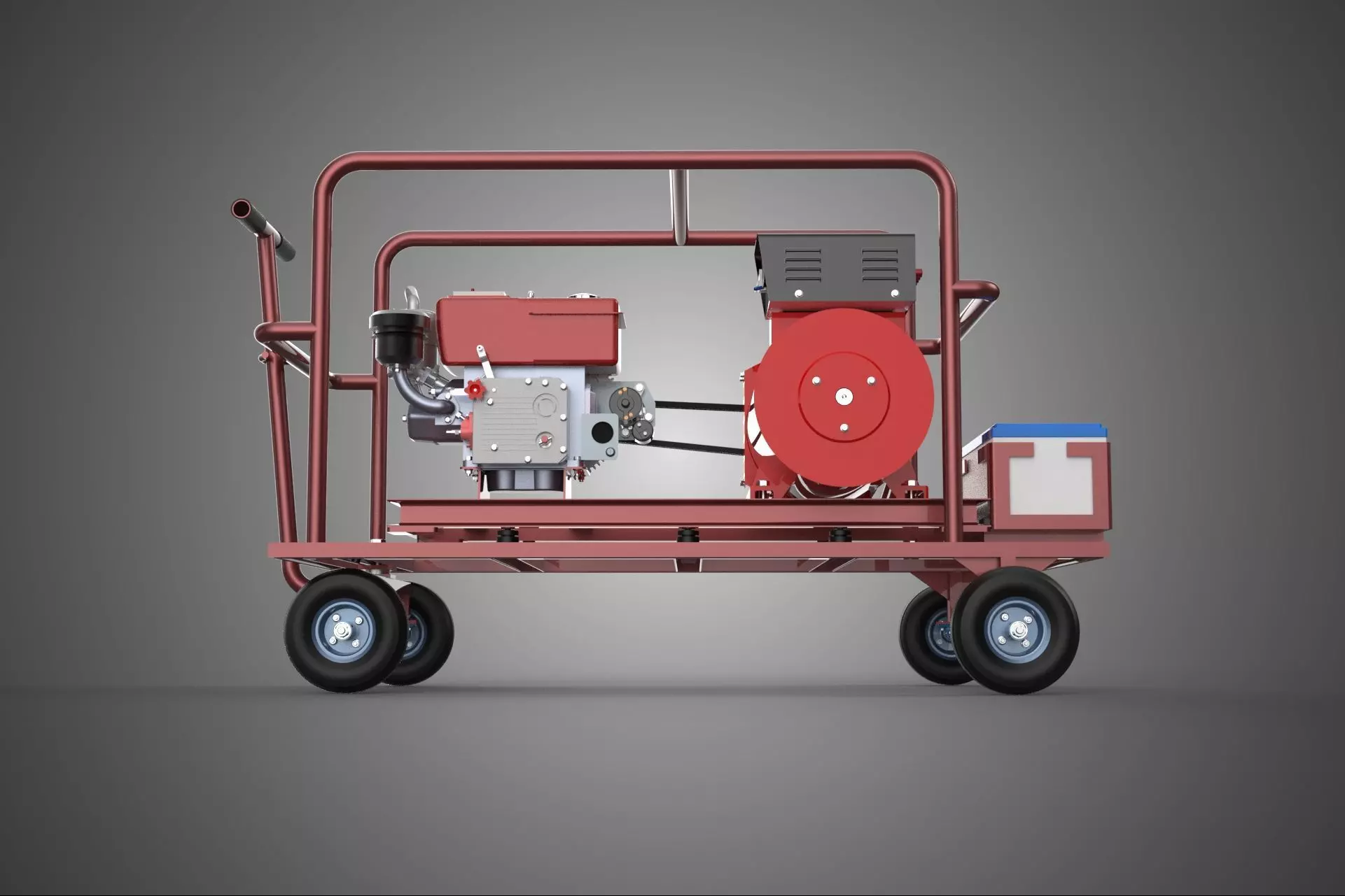 - Trolley Mechanism: The defining feature of the Trolley designation is the incorporation of heavy-duty, pneumatic or solid-rubber wheels and an axle system. This configuration enhances localized mobility, allowing the genset to be maneuvered manually or towed short distances without the necessity of a dedicated trailer or specialized lifting equipment.