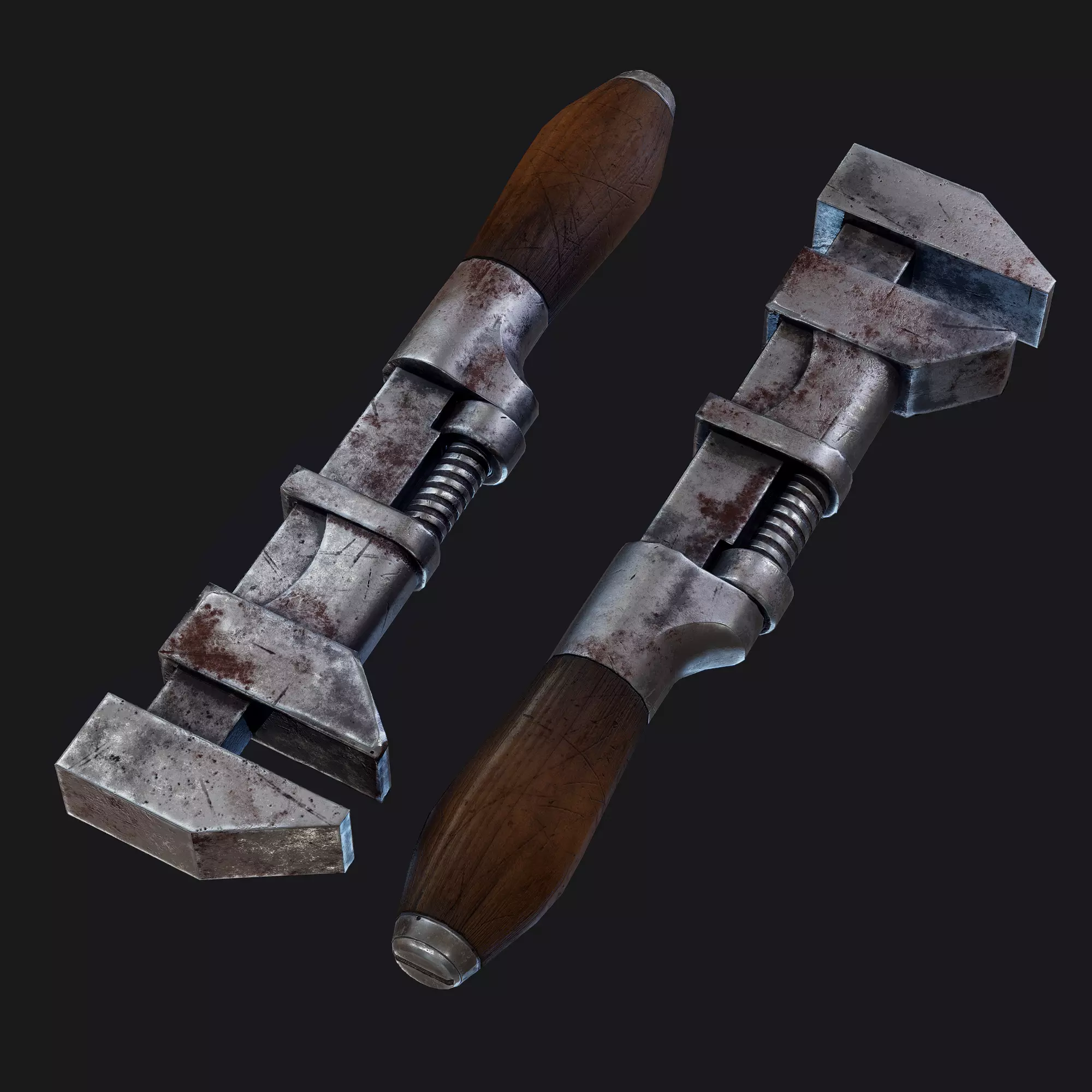 Lowpoly Old vintage pipe wrench game-ready model with PBR-textures