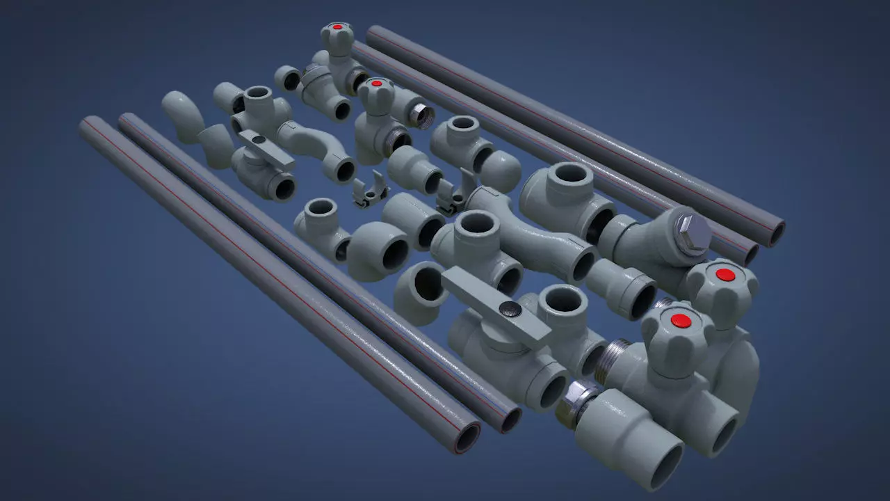 Set of modular PVC pipes Low-poly 3D model