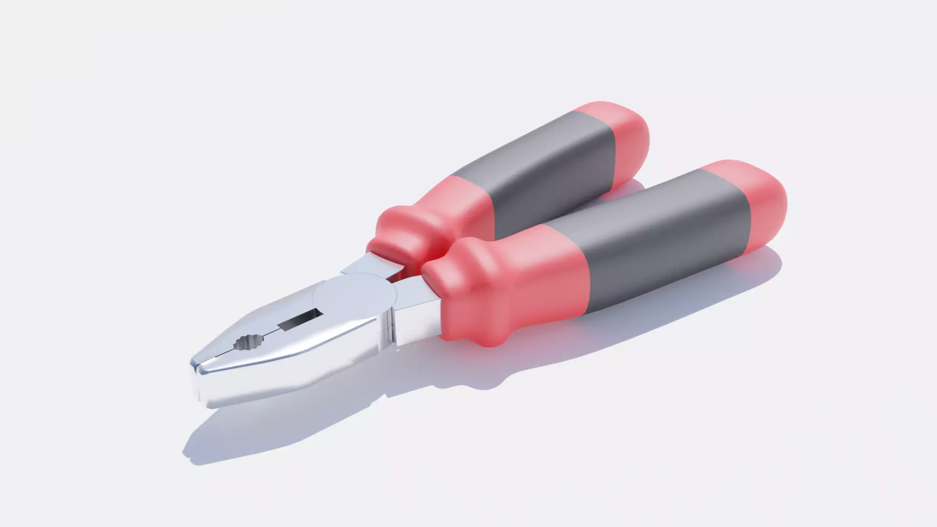 Pliers 3D model that I made using Blender. It is a simple 3D model that has a rubber material for the handle made up of two colours and a head that uses a metallic material. It is like my Needle Nose Pliers 3D model as it uses the same handle as well as a modified version of the head.