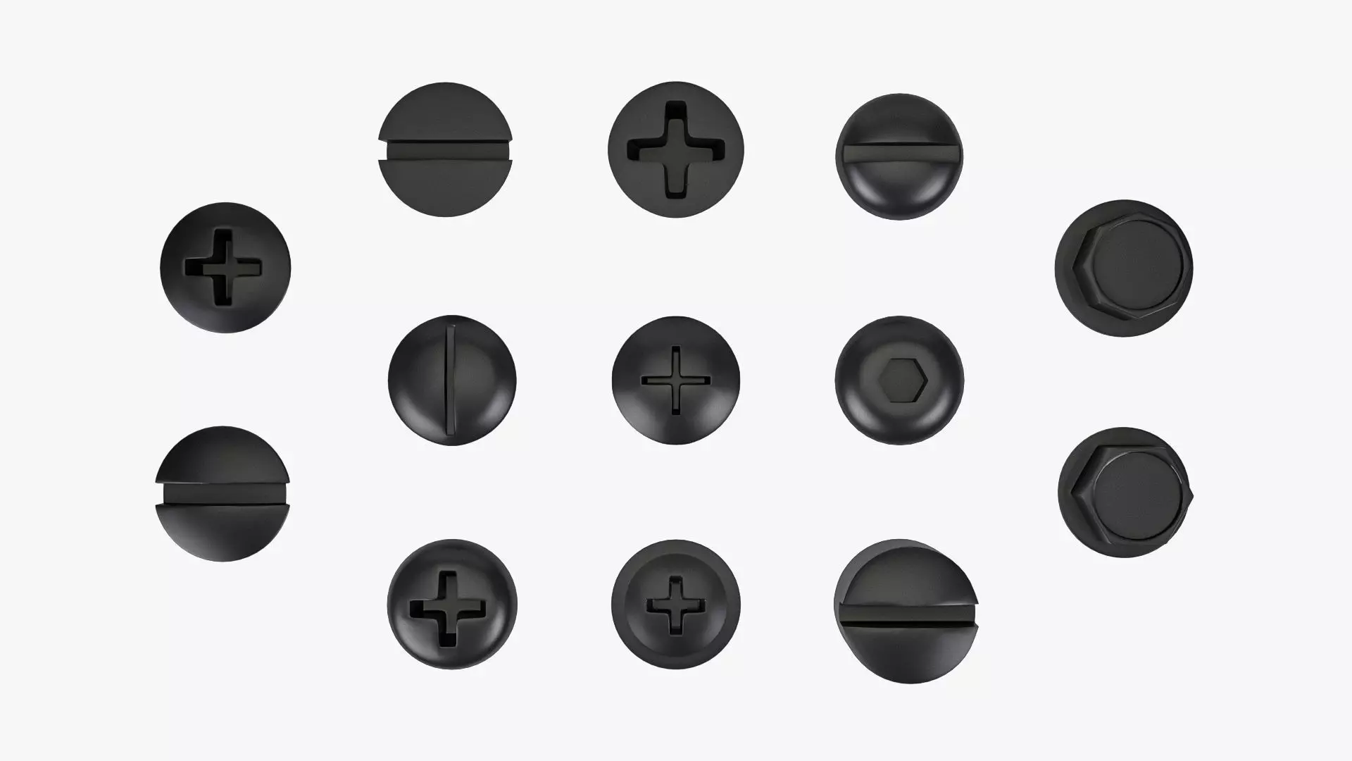 Detailed collection of 13 screw head models, modeled in Cinema 4D and rendered with V-Ray 5. The models were created using approximate real world dimensions.