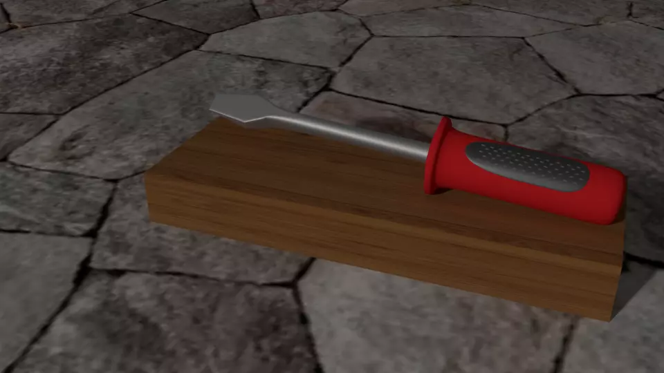 this is a flat screwdriver colored red and with a grey rubber coating. Materials included. Made with Blender 2.79