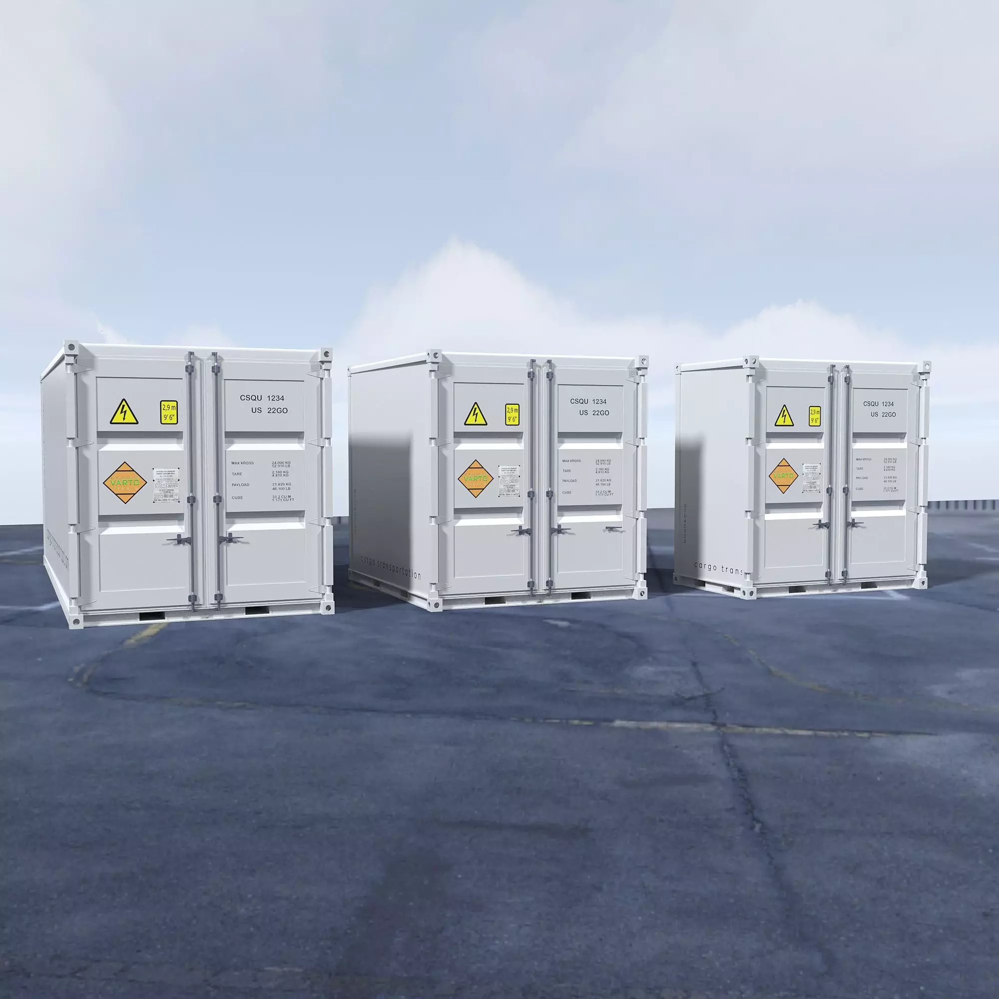 Full container model in three different formats in three sizes. The model is very easy to adapt to any colour by replacing only the diffuse colour. Includes the most popular 3D formats and textures. Minimum polygons and vertices.
