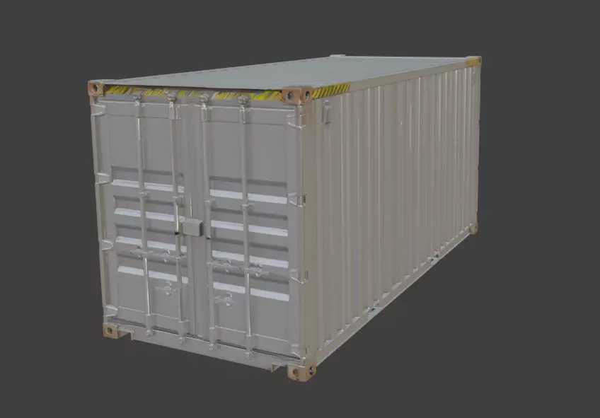 Highly detailed and realistic ISO shipping container 3D model with accurate corrugated steel walls, reinforced corners, double doors with locking rods, and subtle wear and rust details. Fully UV unwrapped, PBR materials ready, clean topology suitable for games, architectural visualization, cargo scenes, logistics renders, and VR/AR applications.