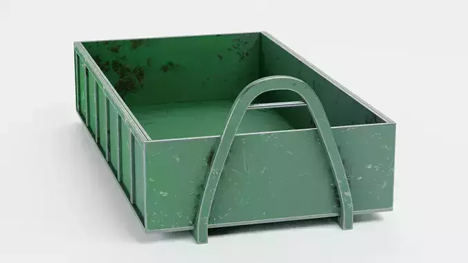 A highly detailed waste container defined by realistic surface imperfections and solid construction geometry. The exterior skin showcases a heavy scratches of environmental wear. Its hollow interior emphasizes depth through aged material tones and organic wear patterns. This asset is built with clean, controlled geometry, ensuring that the visual focus remains on the rich PBR materials and authentic worksite-grade appearance.