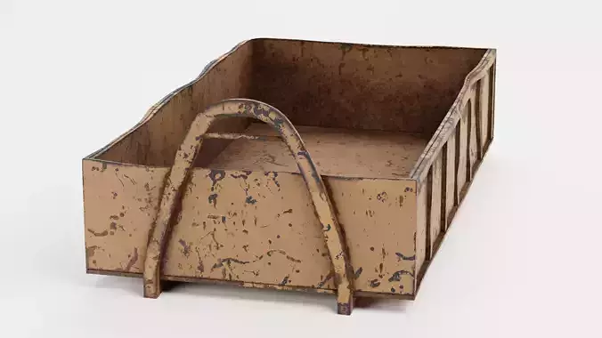 A highly detailed waste container defined by realistic surface imperfections and solid construction geometry. The exterior skin showcases a heavy scratches of environmental wear. Its hollow interior emphasizes depth through aged material tones and organic wear patterns. This asset is built with clean, controlled geometry, ensuring that the visual focus remains on the rich PBR materials and authentic worksite-grade appearance.