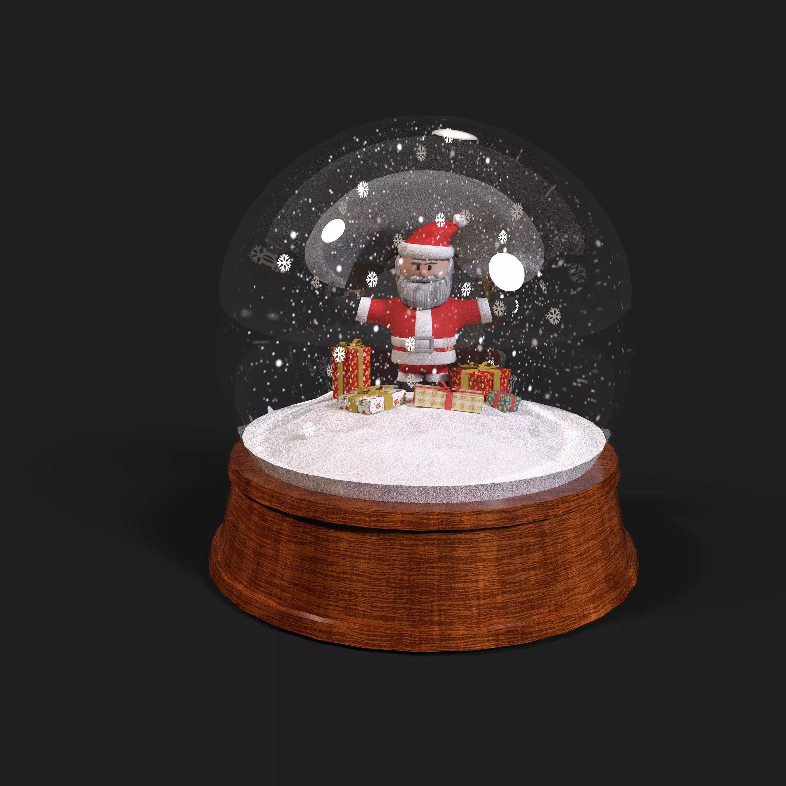 This model features a transparent glass dome, a wooden base, a Santa Claus figurine, gift boxes, and floating snow particles, capturing the classic charm of a Christmas snow globe. The asset is built with real-world proportions, clean geometry, and high-quality PBR materials for realistic rendering in both real-time engines and offline renders.