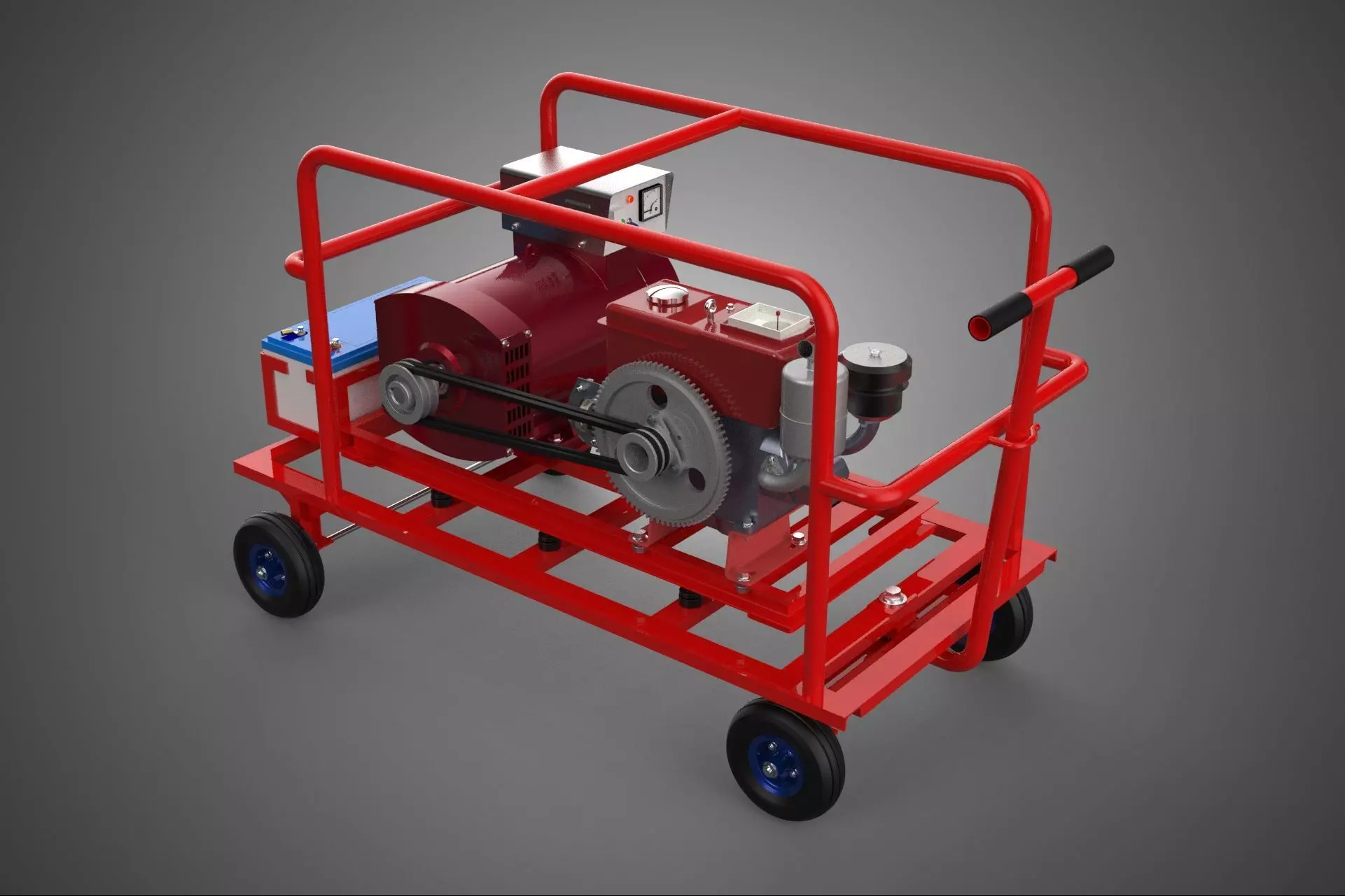 The mobile trolley cart genset is composed of five principal integrated systems: the prime mover, the generator head (alternator), the fuel system, the control panel, and the structural mobility frame.