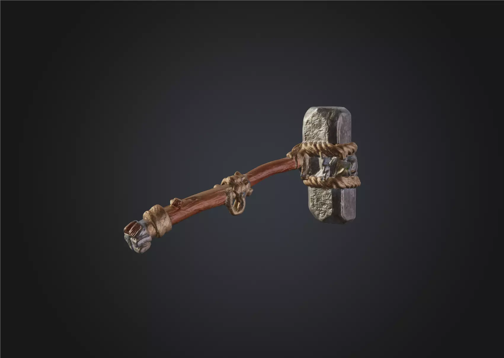 High precision, realistic stone hammer, PBR3d model, essential for survival games, surreal