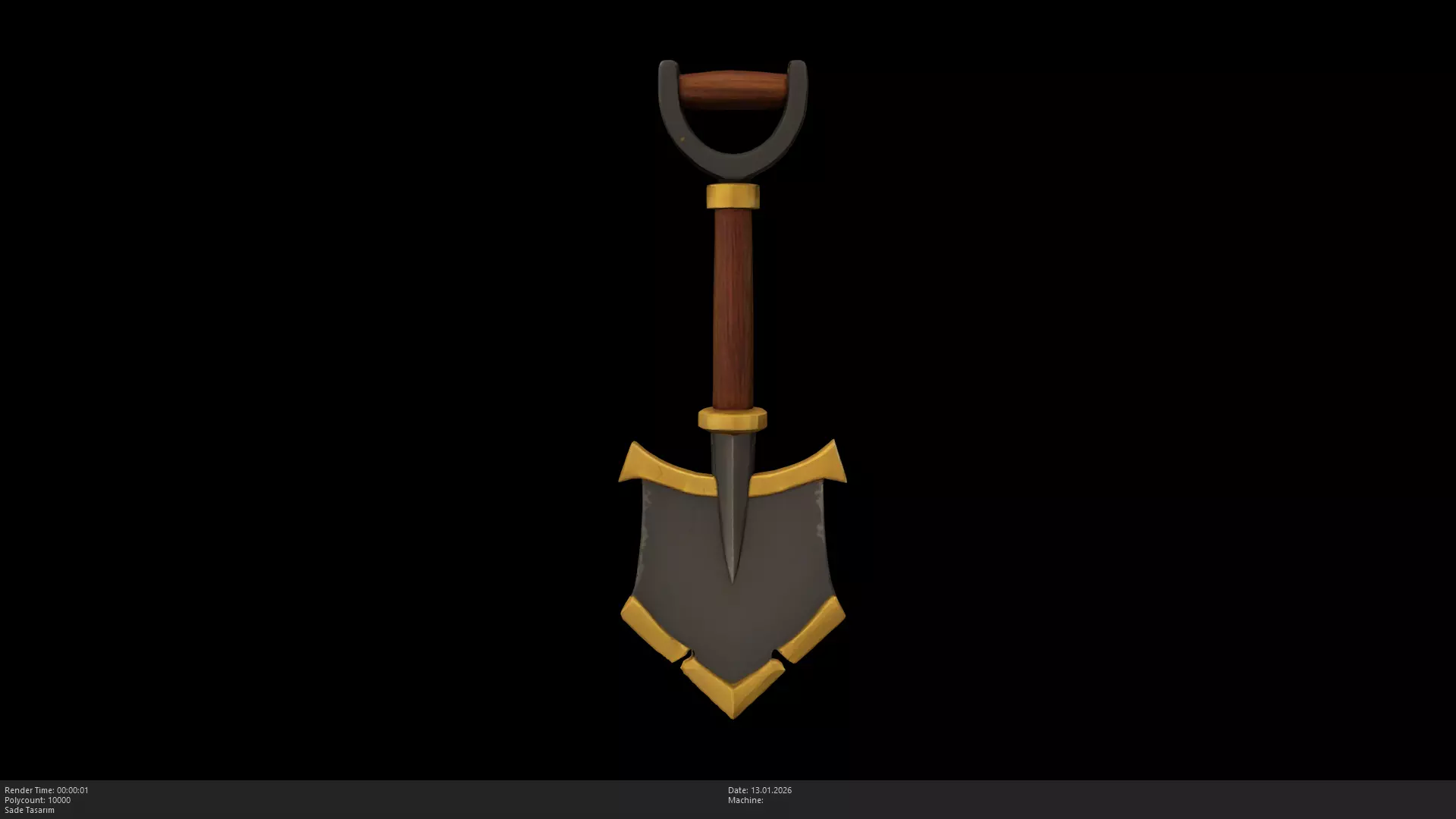 Stylized Golden Shovel / Royal Mining ToolThis is a high-quality, stylized 3D model of a golden shovel. Featuring a polished gold-edged blade, a rich wooden handle, and professional metallic finishes, this model is perfect for high-tier equipment sets, treasure hunting mechanics, or as a royal garden tool in fantasy RPGs.