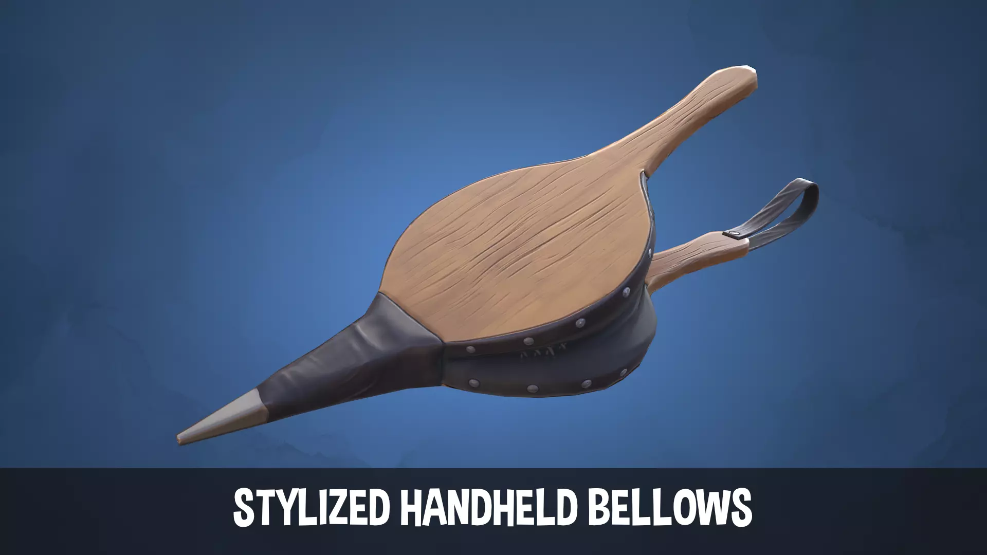 Game-ready, stylized model of a handheld bellows prop for PC, consoles, mobile, or VR games. It's also good for games with stylized graphics. Ideal for medieval and fantasy scenes.