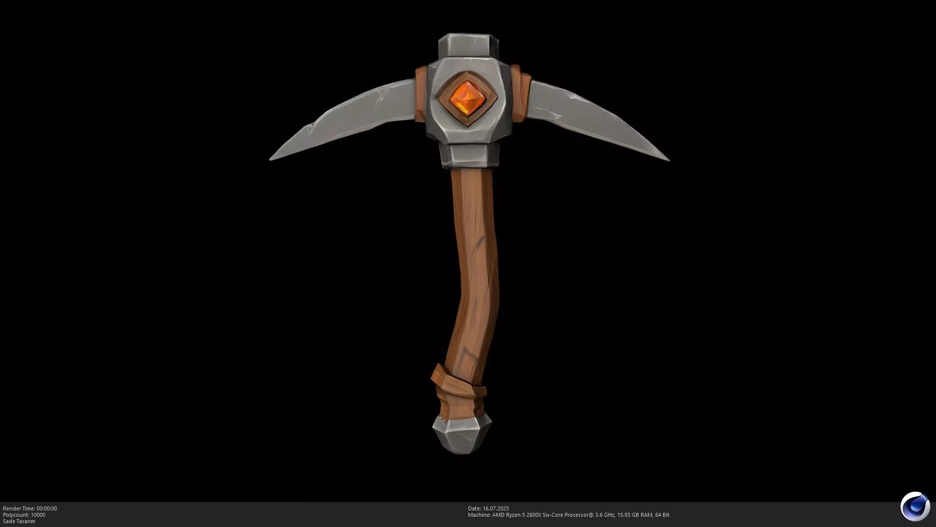 It comes with a vibrant, high-resolution 4096x4096 UV map diffuse texture, bringing out the rustic wood grain, the worn metal, and the luminous gem. Please note, this model uses a non-PBR (Physically Based Rendering) workflow, ensuring broad compatibility and easy integration into various game development pipelines.