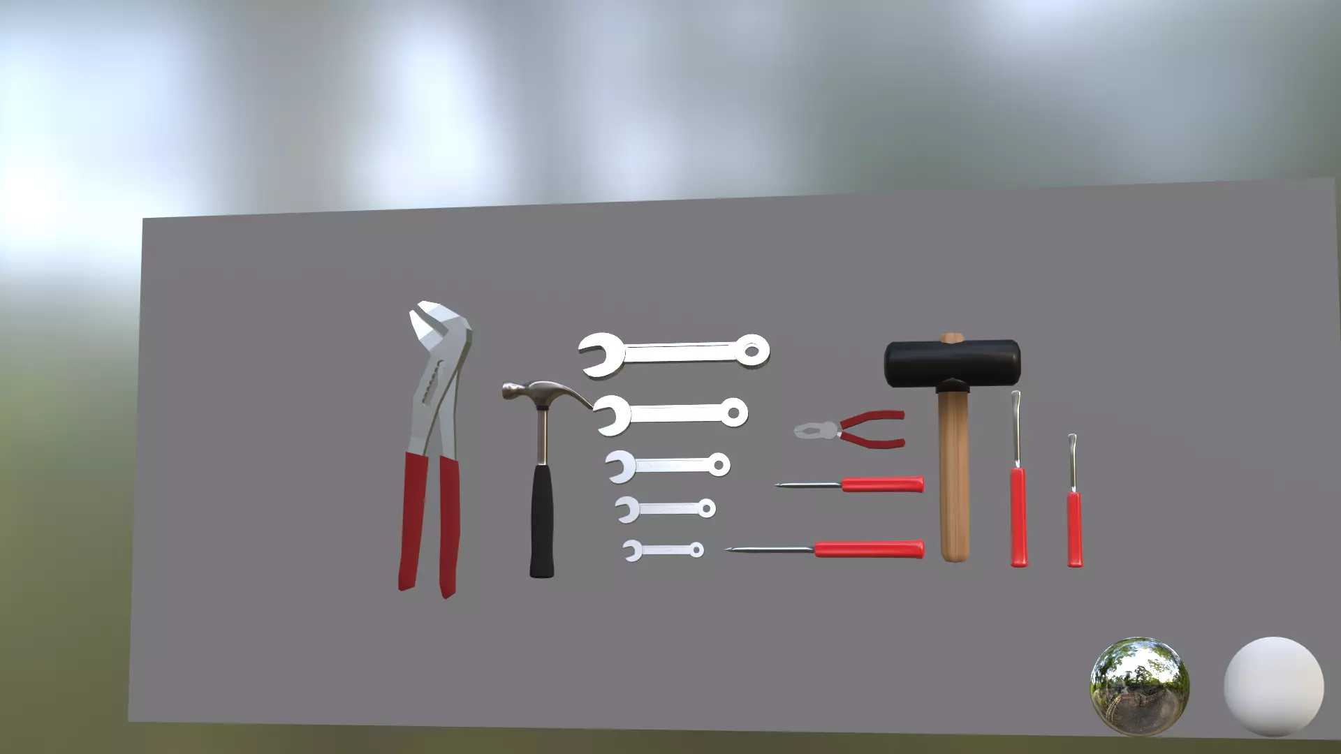 What's Included:Hammer: Classic design, suitable for versatile use.Flat Screwdriver: Clean, precise edges for realism.Philips Screwdriver: Accurate cross-head details.5 Wrenches: Various sizes, modeled for authenticity.Groove Pliers: Functional and textured grip.Small Pliers: Compact and detailed for close-up shots.Rubber Hammer: Soft finish for a unique aesthetic.Allan Wrenches: Comprehensive set with precise angles.