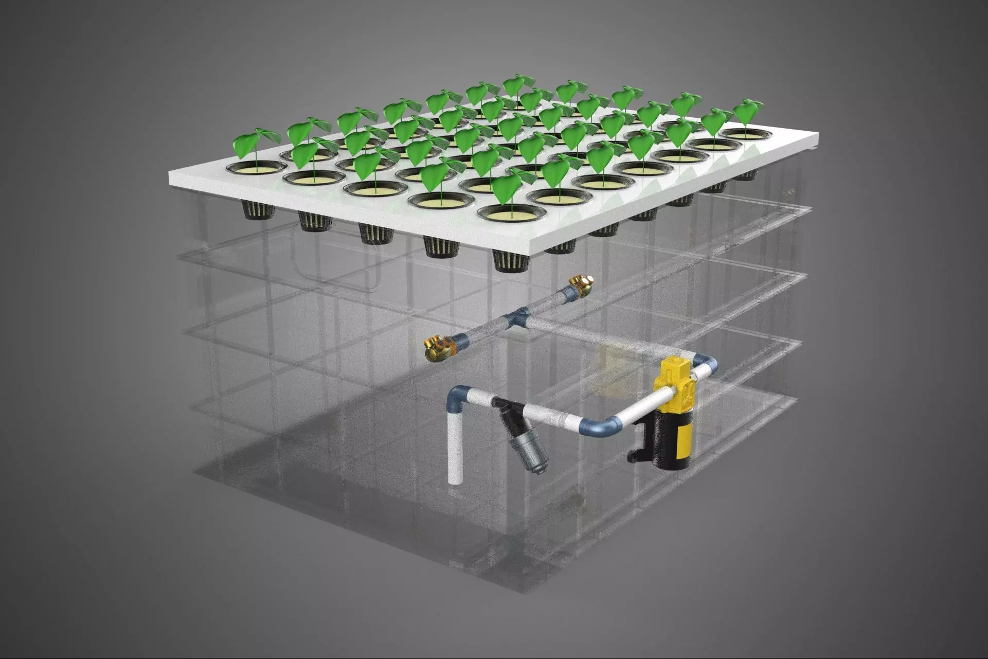 - Unabsorbed solution passively drains back into the Grow Tray reservoir, ensuring a closed-loop system where water and nutrients are recycled and conserved.