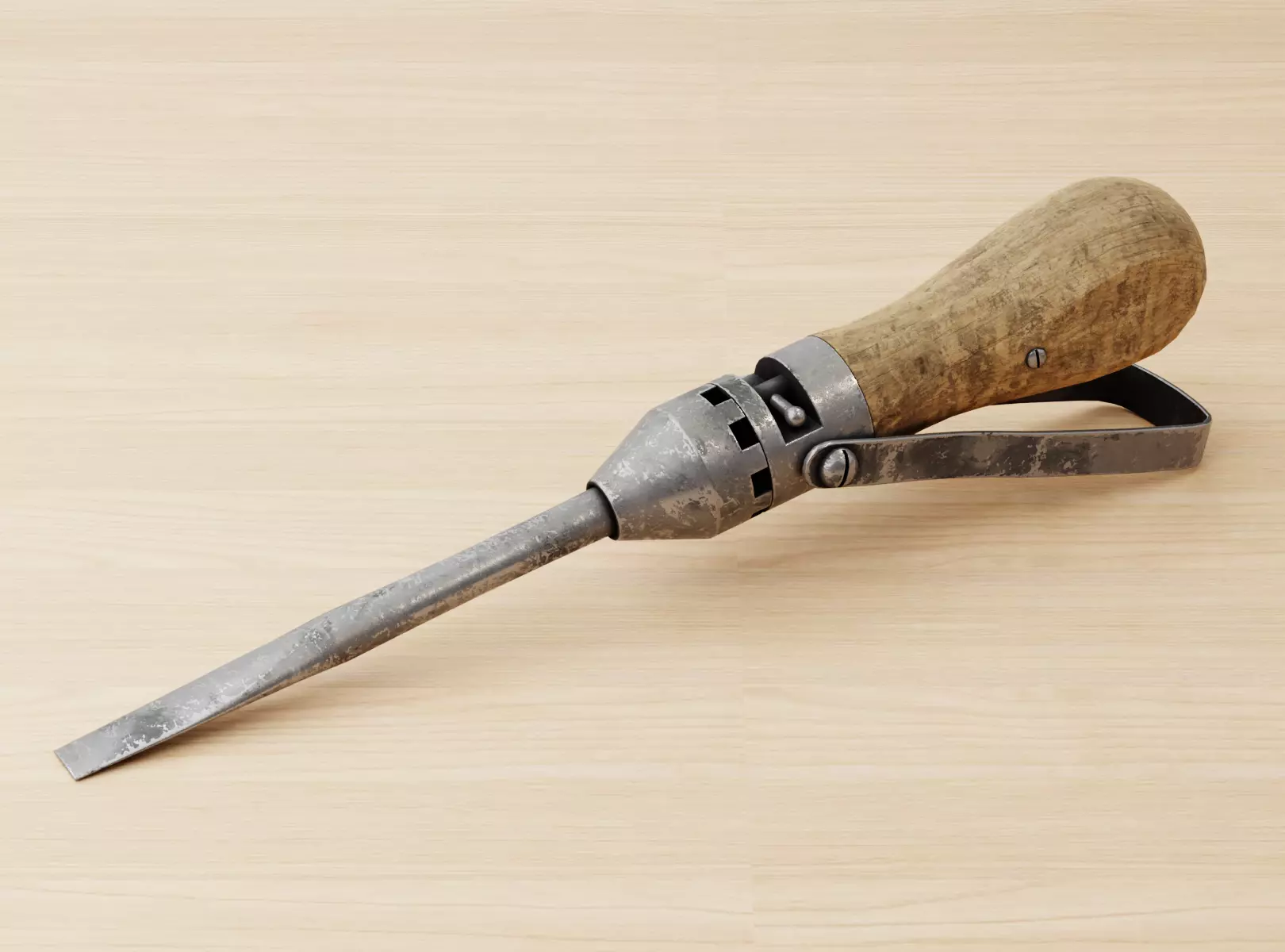 Model is one piece. (If desired, the screwdriver's apparatus can be moved up or down by entering the editing mode. The big moving part of the model is baked separately in the Bake process. This eliminates the shadow falling on the AO Mapin coating when you move the metal apparatus),