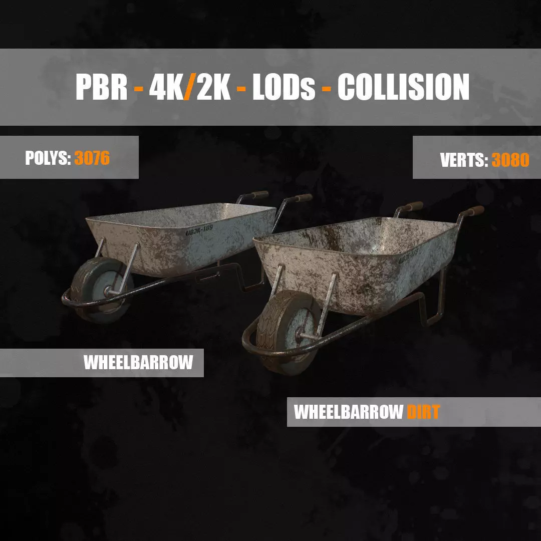Wheelbarrow Clean/Dirt modeled in Maya and Textured in Substance Painter.