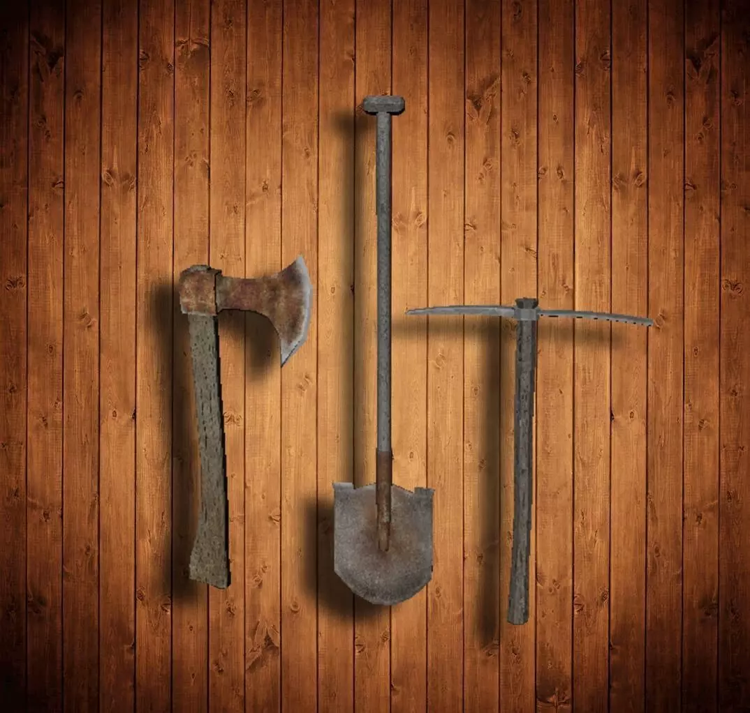 Axe - 480/481 polys,vertsPick - 425/434Shovel - 545/574
