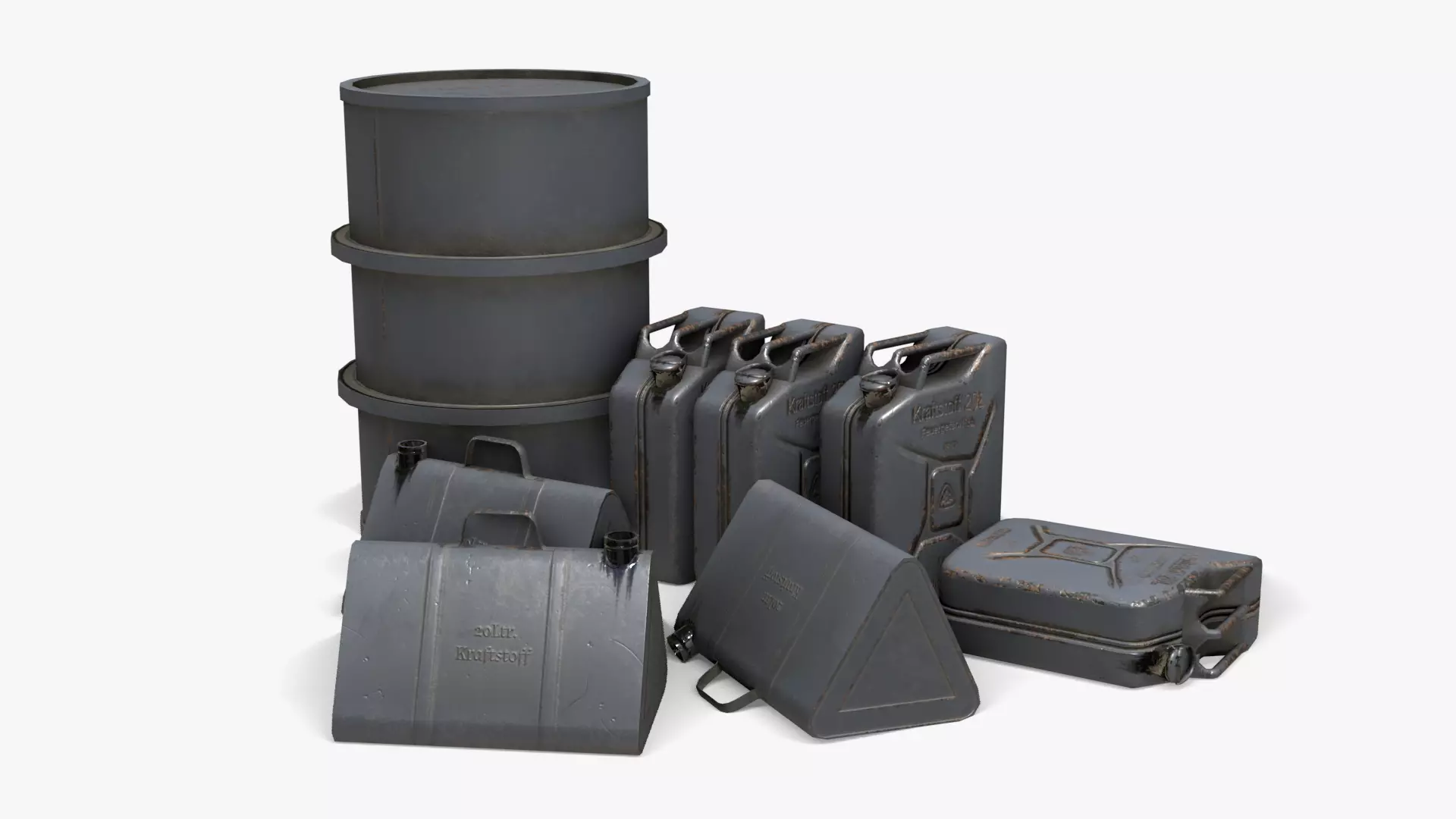 The 3D model of WW2 german oil drums and jerrycan assets. Ready to use in any game engine, this assets are all in lowpoly and can be used on any Second World War scene you have made. This liquid storage asset will embellish all your 3D scenes.