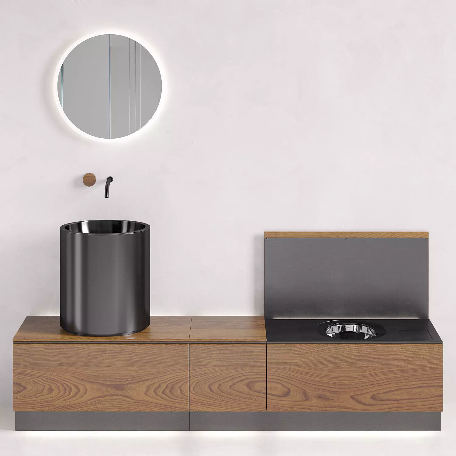 Designer: Natalino Malasorti (Industrial Invention Patent for toilet module)Manufacturer: CEA designMaterial: Canaletto Walnut and Black Diamond satin finish