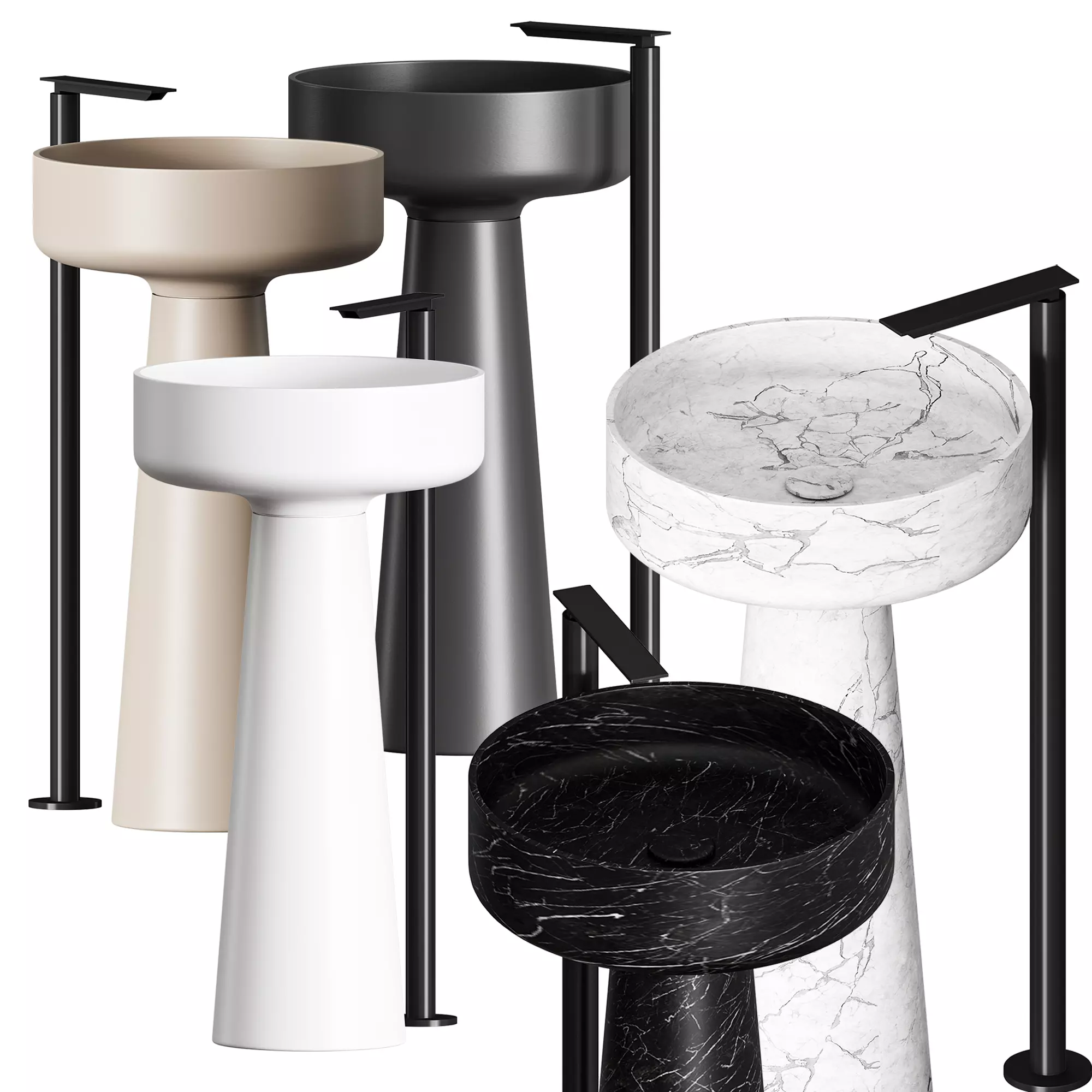 Washbasin in white Carrara marble, gray Carnik marble, black Marquinia or white Cristalplant bio-based, with cylindrical sink and pedestal, no tap hole and no overflow, mounting kit included. Available in wall or freestanding version. - the mounted version is equipped with a back groove for water connection. The washbasin can also be supplied in stone or marble upon request, the price to be calculated.