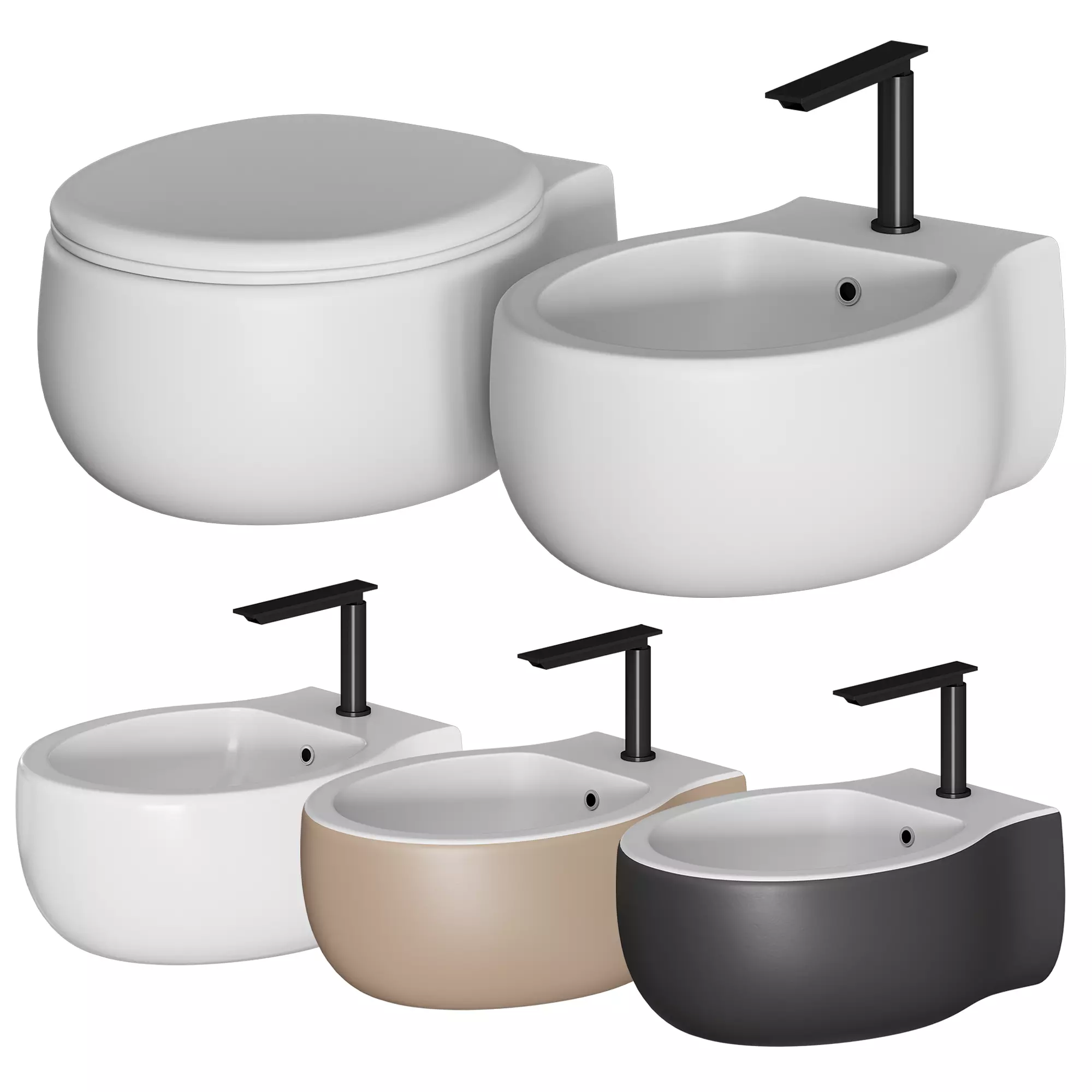 Wall-mounted ceramic bowl, available in white or two-tone (gray outer surface RAL7021), with in-wall drainage. The white version is also available with a matte outside and a matte seat. Suitable for jet flush and flush valve, suitable for wall recessed installation. or an external tank; complete with polymer seat with soft closing mechanism, with mounting kit. For use with Geberit built-in tanks: Combifix and Duofix mod. Sigma 8 and Sigma 12.