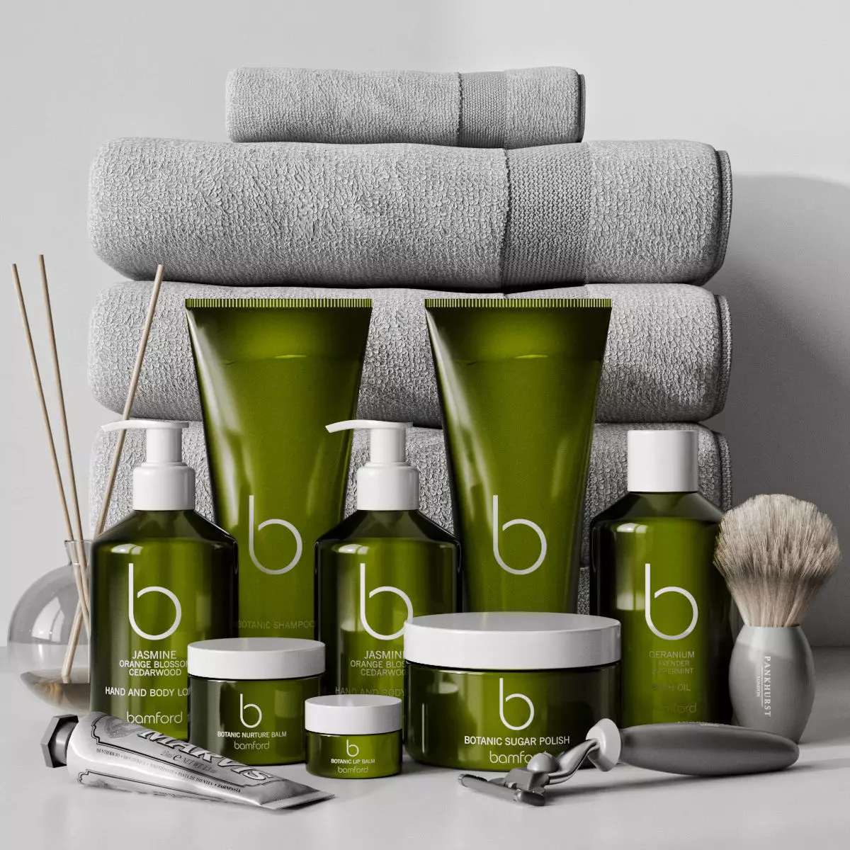 The model has material settings that define how surfaces look (color, shine, transparency, etc.).