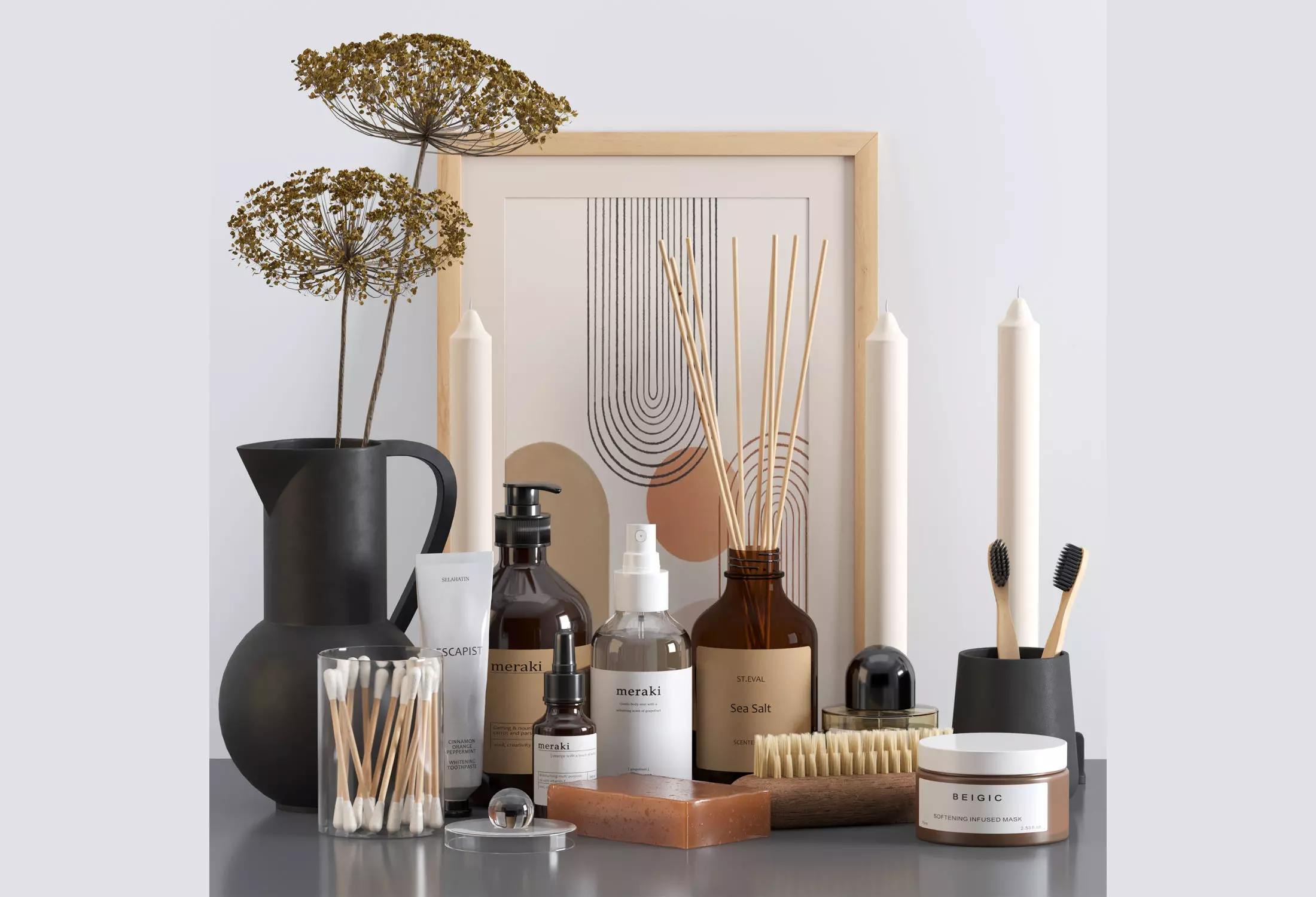 The model has material settings that define how surfaces look (color, shine, transparency, etc.).