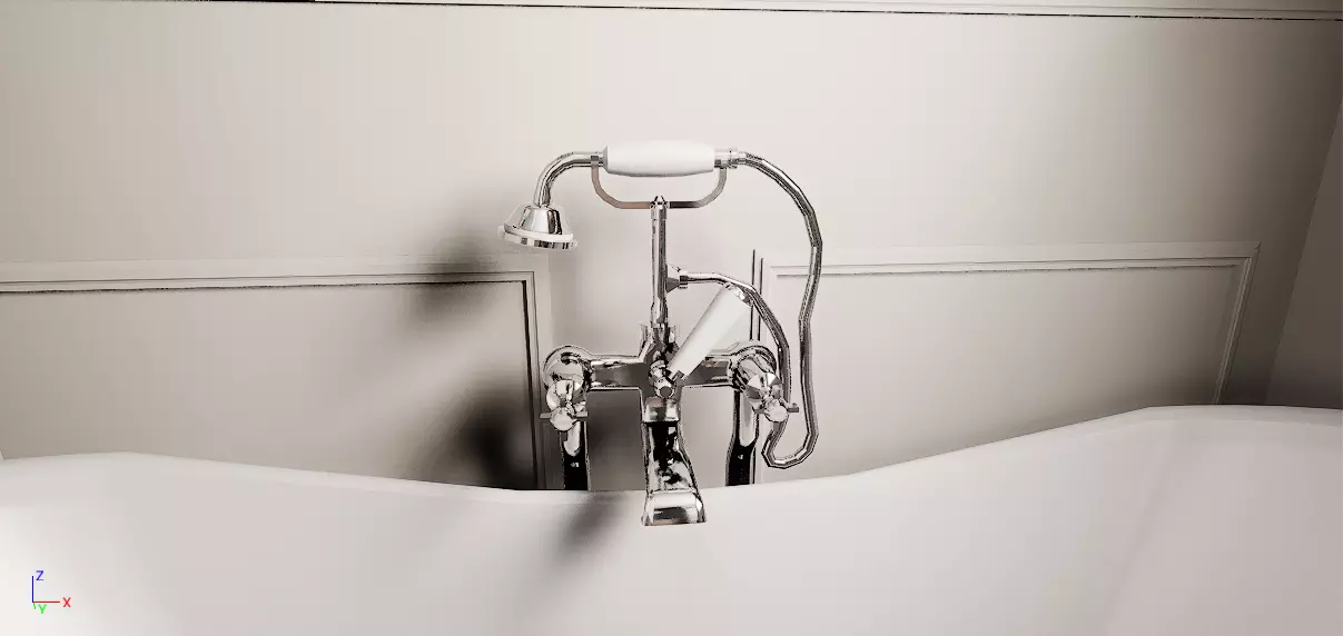 Bath taps that work great in renders and games. Created with 2 materials, one for chrome and one for ceramics.