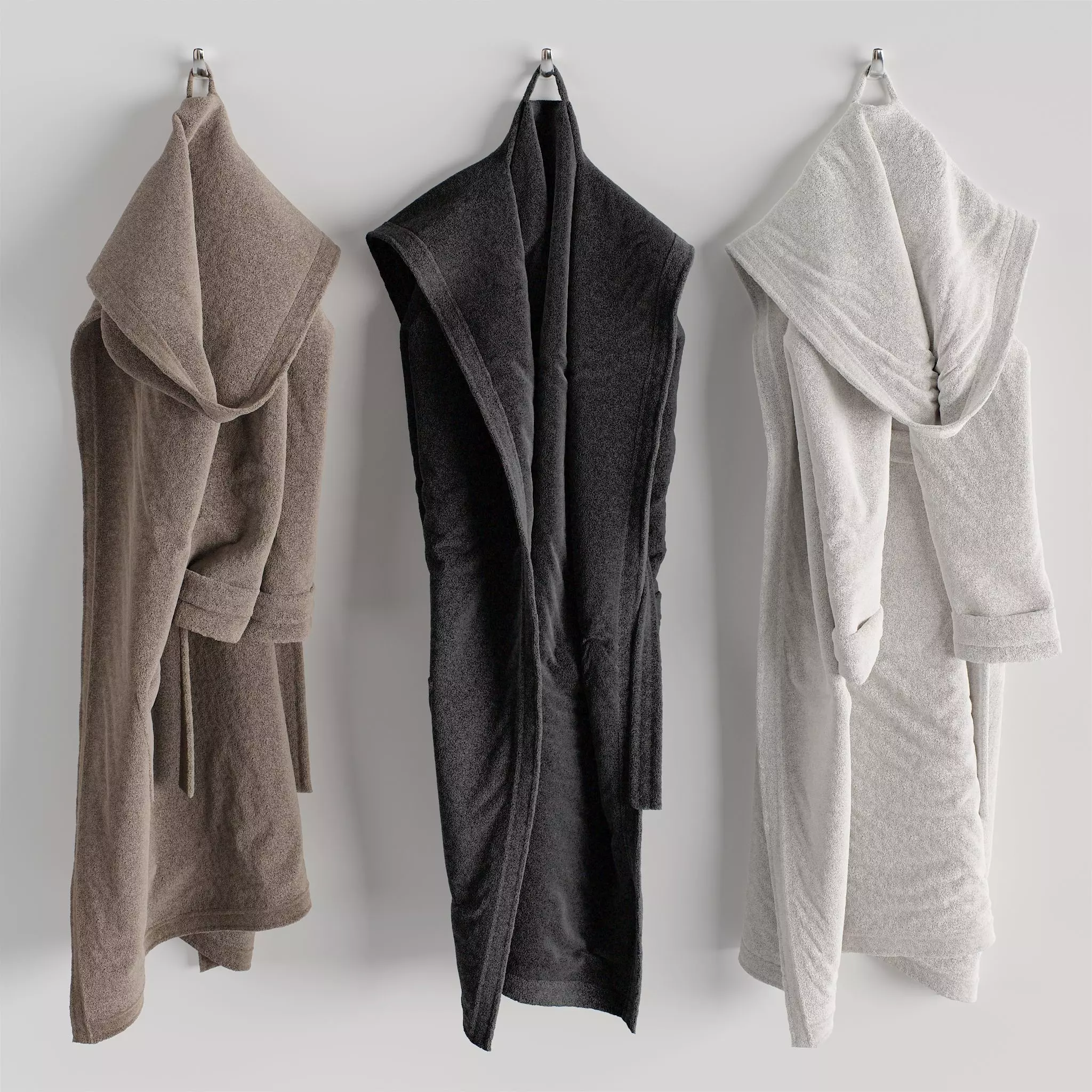 This 3d model of Bathrobe Hanging Set 01 has a fully textured, detailed design that allows for close-up realistic renders.