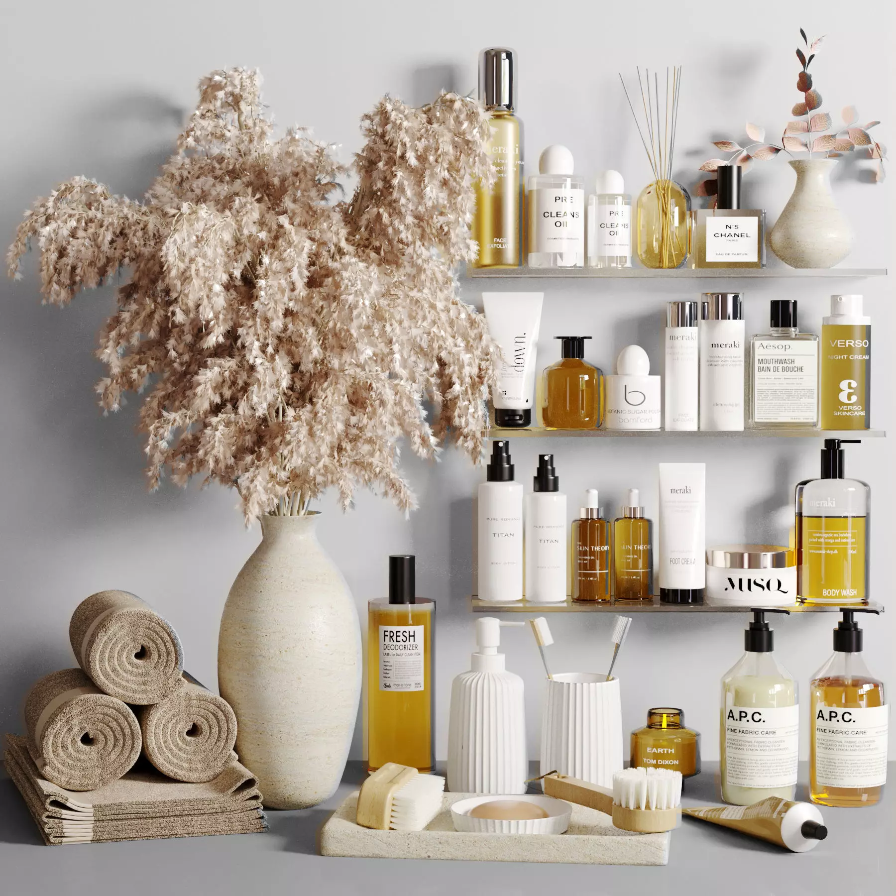The model has material settings that define how surfaces look (color, shine, transparency, etc.).