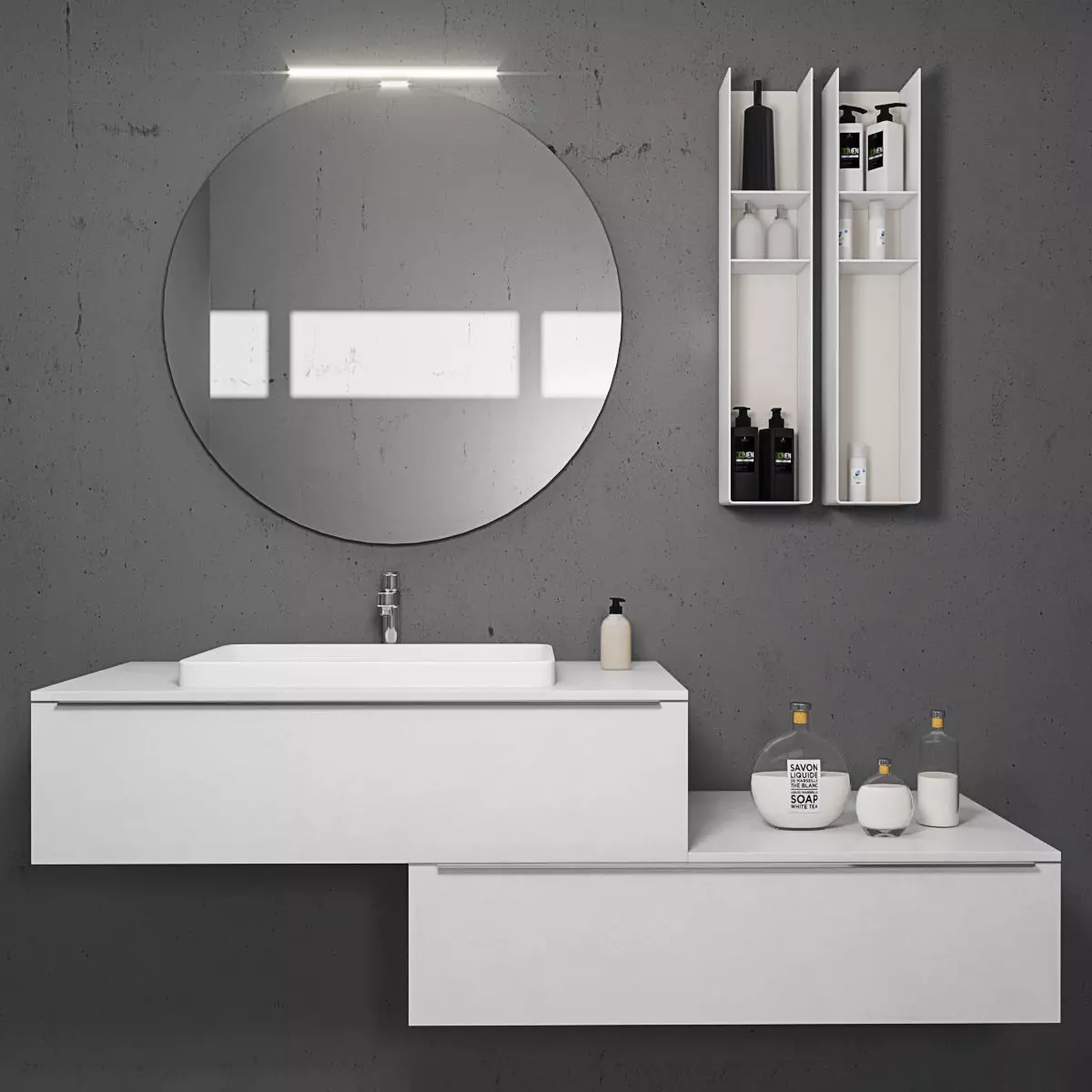 The model has material settings that define how surfaces look (color, shine, transparency, etc.).