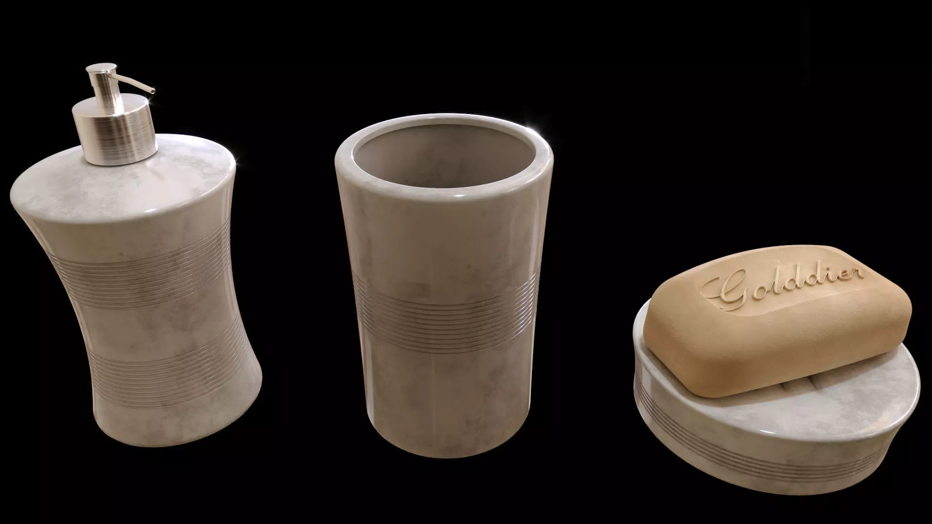 Bathroom accessories set high quality photorealistic 3D model true to scale.