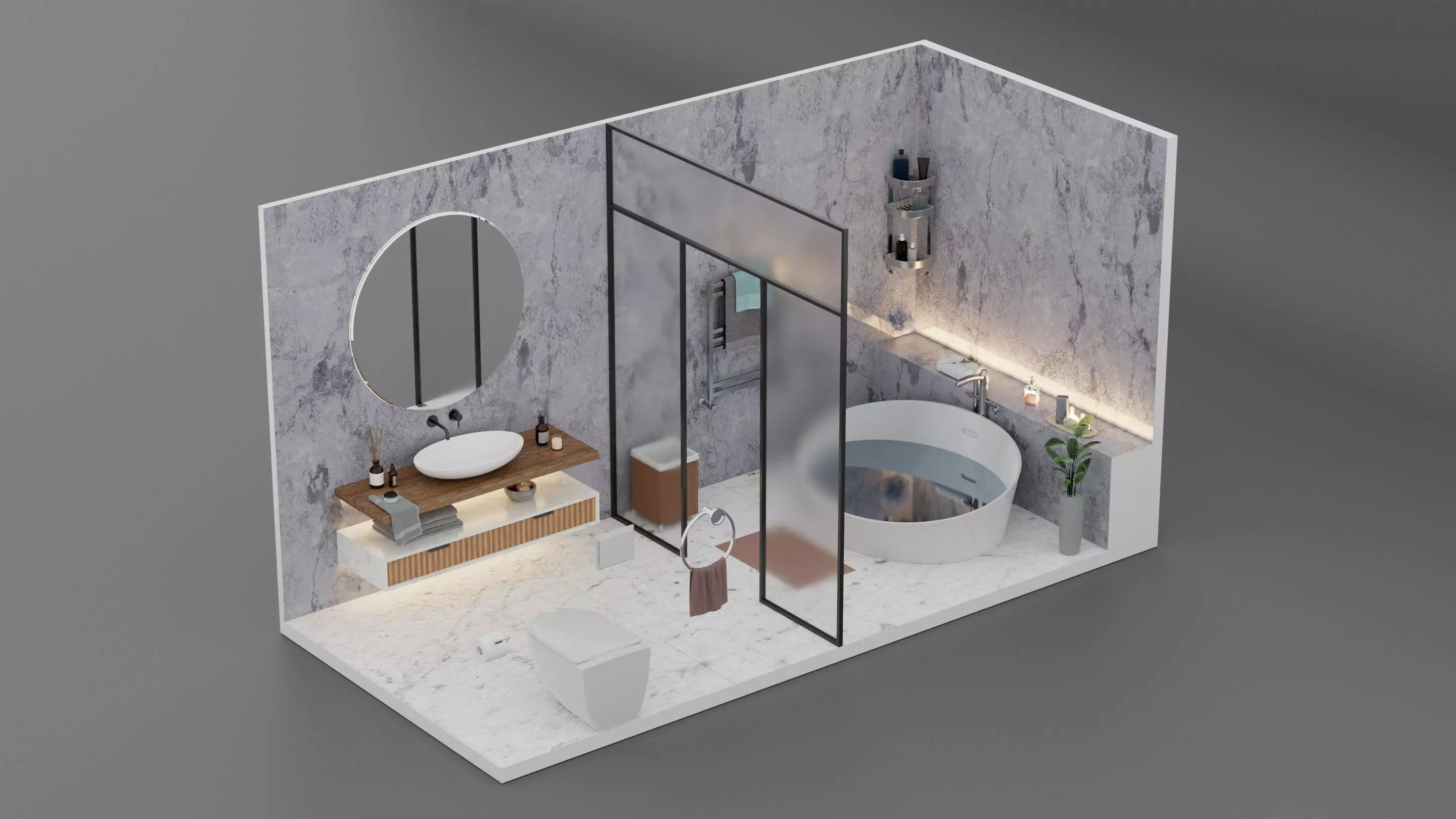 The model has material settings that define how surfaces look (color, shine, transparency, etc.).