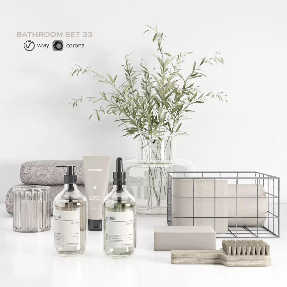 Bathroom set with bouquet 33 3D model