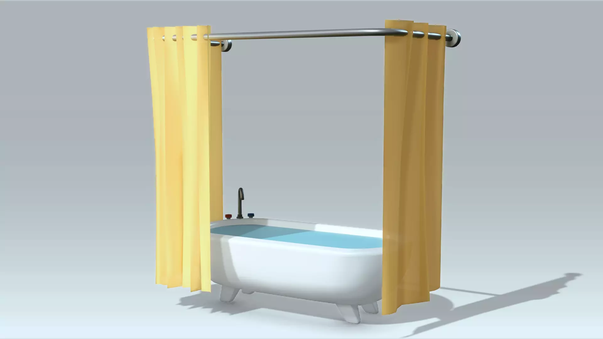 Bathtub and Shower Curtain Low-poly 3D model