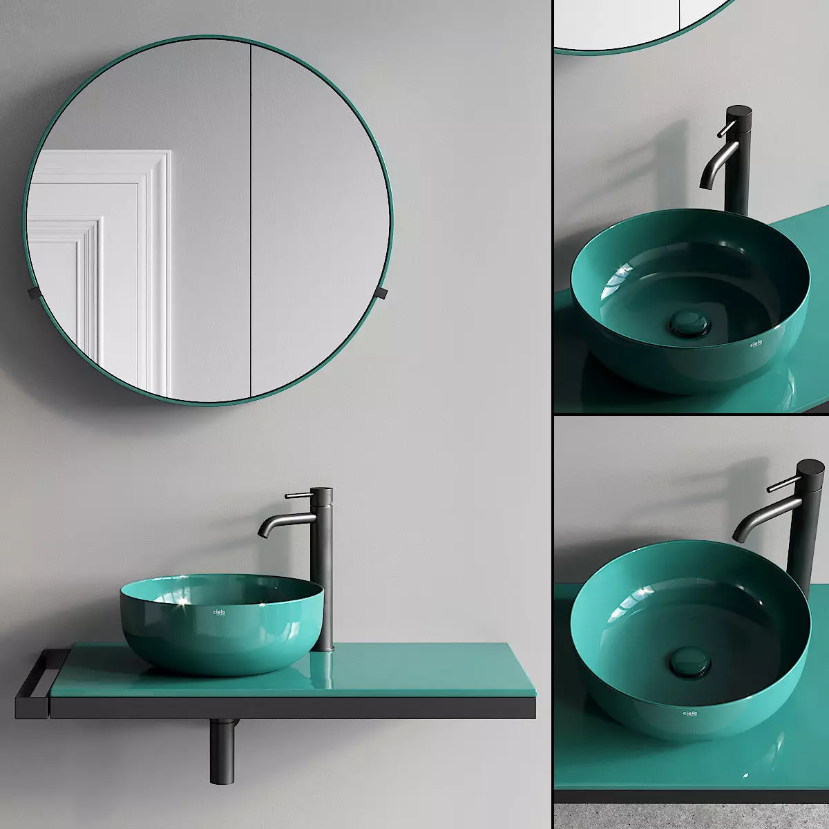Washbasin:Collection - Le BacinelleType - Countertop round ceramic washbasinMaterials - CeramicDesigners - Luca CimarraProduct code - BAERA40Dimensions: Width - 400mm Depth - 400mm Height - 150mm