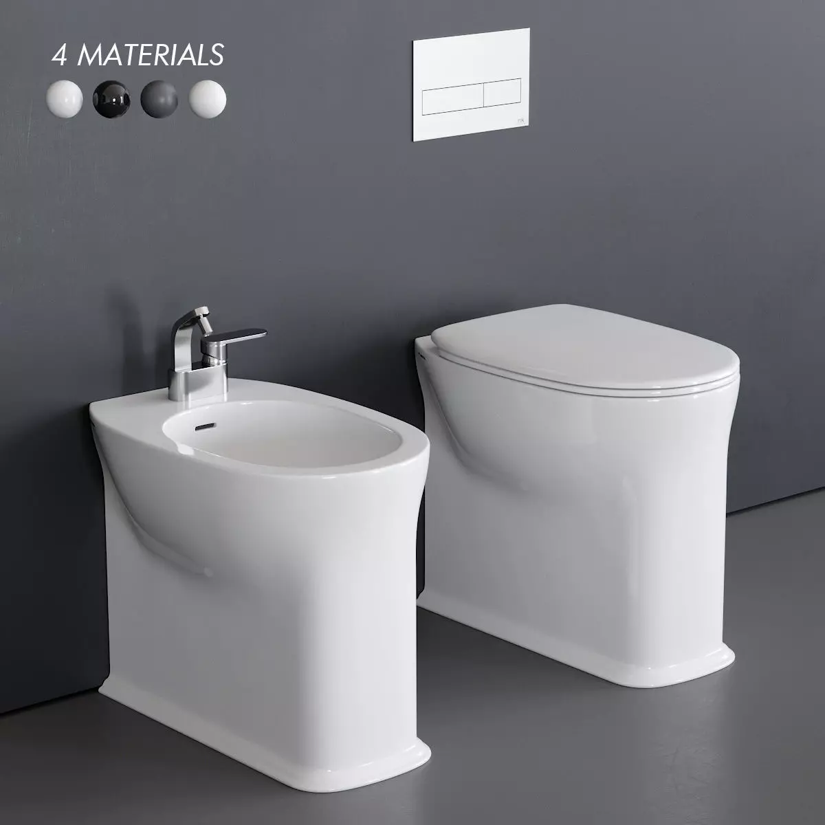 The model has material settings that define how surfaces look (color, shine, transparency, etc.).