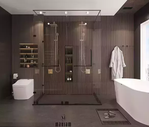 Dark Luxury Bathroom & Dressing Room Interior | Moody High-End Design | 3ds Max + Corona RendererThis dark-themed interior scene brings together a luxurious bathroom and elegant dressing room in a cohesive, moody palette. The design uses deep tones, textured surfaces, and subtle lighting to create a modern and atmospheric space that exudes sophistication and style.Created with 3ds Max + Corona RendererFully textured, real-scale, and render-readyOrganized layers with optimized lighting and camera setupDesigned for cinematic interior visualization and product staging Interior Highlights: BathroomFloating matte black or dark wood vanity with integrated sinkLED backlit mirror or vertical mirror lightsWalk-in shower with glass partition and dark stone tilesBrushed metal fixtures (black, bronze, or gunmetal)Minimal accessories: towel racks, soap dispensers, indoor plantsMood lighting and natural shadows for depth Dressing RoomBuilt-in wardrobe with dark wood or charcoal laminate finishAmbient strip lighting in shelving and wardrobe railsSeating bench (velvet or leather)Large vertical mirrorNeutral or dark rug to contrast flooringSoft indirect lighting and accent wall color (navy, graphite, or deep green)Perfect For:Luxury interior design presentationsProduct and lighting visualizationInterior architecture portfoliosReal estate CGI and dark-themed stagingCinematic 3D renders and moodboard assets