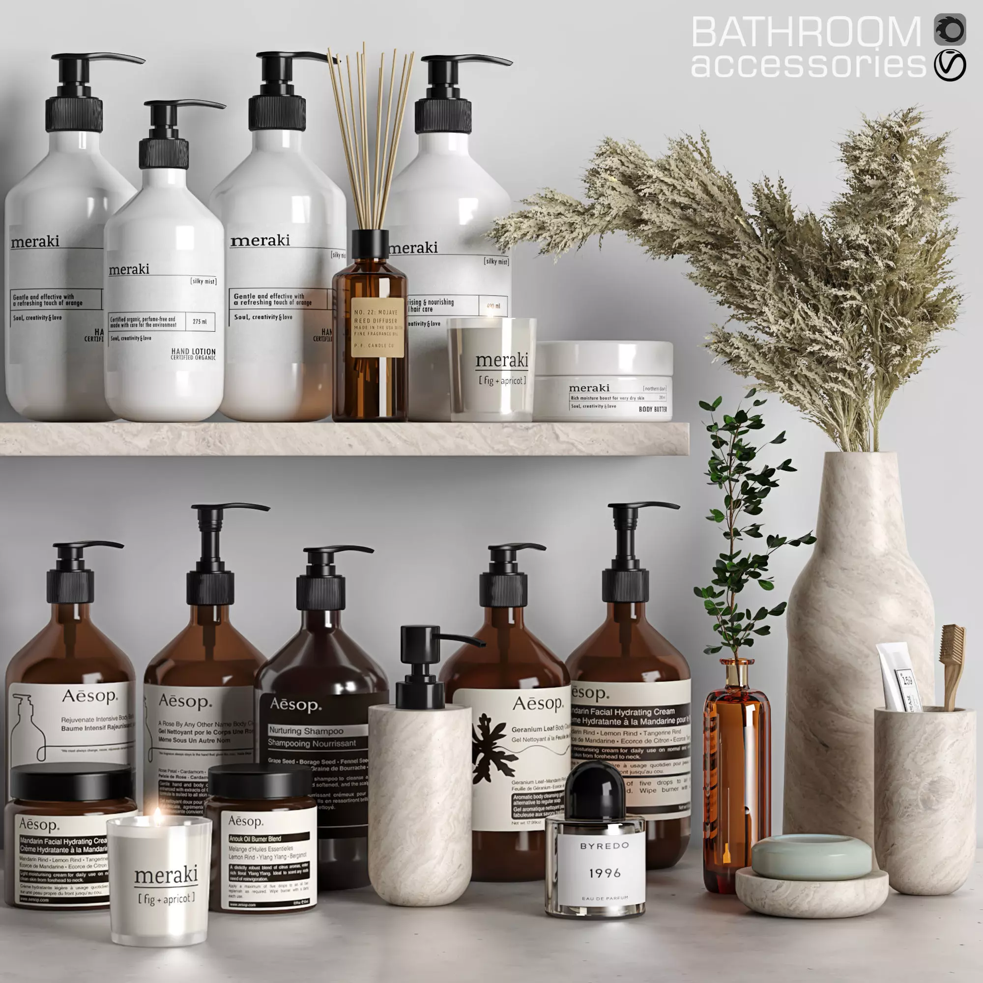 The model has material settings that define how surfaces look (color, shine, transparency, etc.).