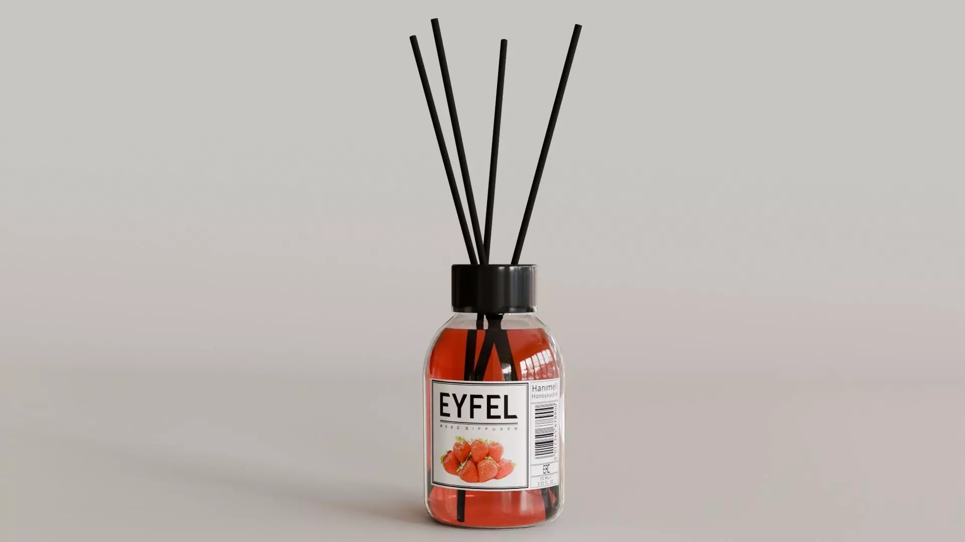 Photorealistic, high-quality 3D model of 'Eyfel Perfume Reed Diffuser Strawberry' Created with Blender 4.4. The model is suitable for Ultra HD rendering and ready for close up shots.The model rendering quality shown on product previews.