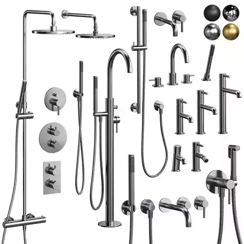 3ds Max faucets are available in 4 colors: chrome, Gold, black Matt, chrome brushed. If necessary, the metal color can be easily edited by changing the color of the Color Node. Blender and Cinema 4d available in chrome color without labels, the color of the faucets is also easy to change.