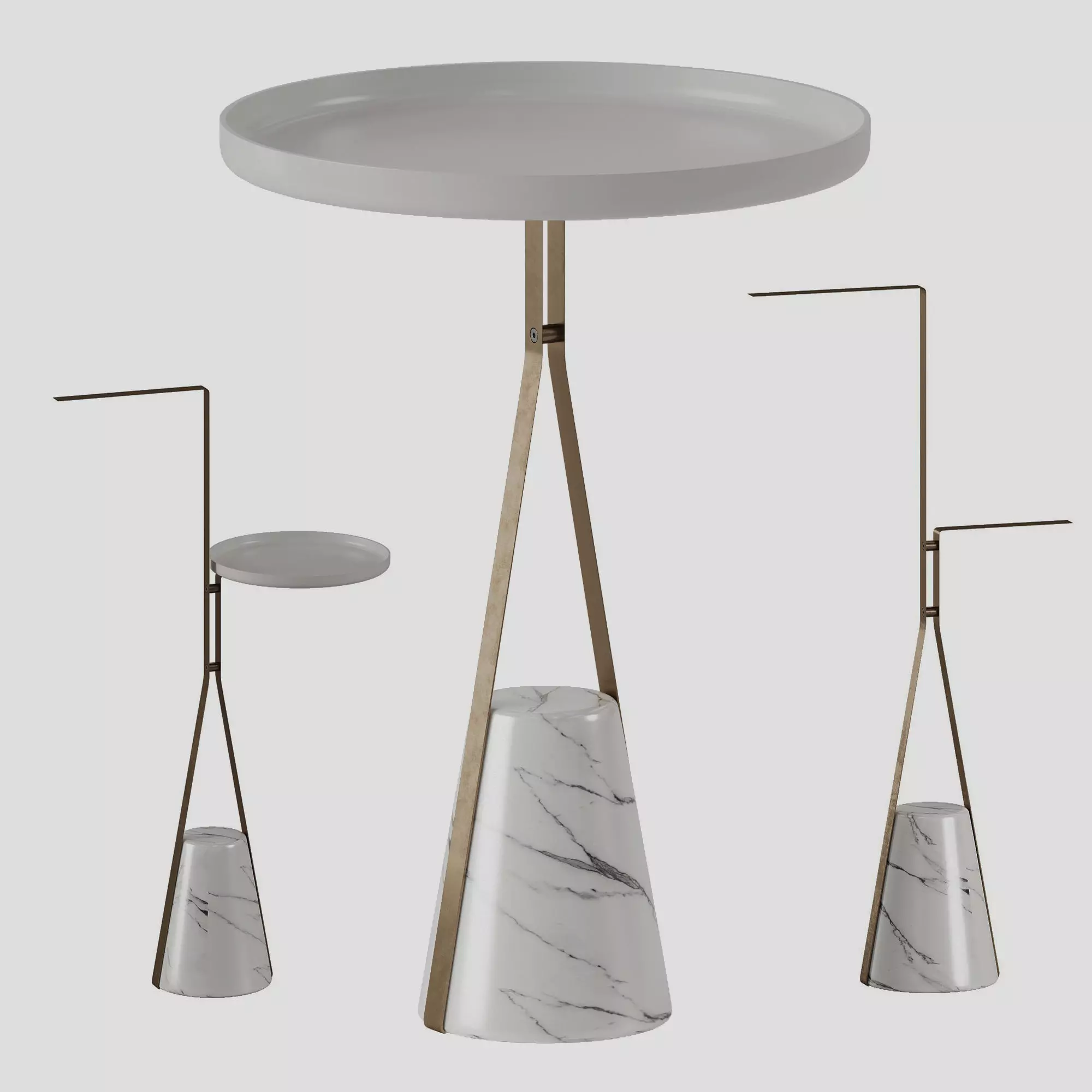 HALO2B - Table with base in satin Carrara marble, structure in brass lacquered matt white or embossed as per our color samples. Tray available in Flumood or Colormood. HALO3B - Towel holder with base in satin Carrara marble, structure in brass lacquered matt white or embossed as per our color samples. HALO4B - Towel holder with base in satin Carrara marble, structure in brass lacquered matt white or embossed as per our color samples. Tray available in Flumood or Colormood.Halo is a family of freestanding accessories and tables that redefines the image of a functional element for daily use inside the bathroom, but which can also be used in other rooms of the house, for example, the door stop version. A truncated cone base in satin Carrara marble as an identity trait, a brass metal structure, available in the different colors that antoniolupi offers, and a profile to find a meeting point at a certain height from which to develop the different configurations. In the table version, for example, the circular tray made of Flumood or Colormood, provides a convenient support surface for placing objects intended for personal care and for carrying out personalized wellness rituals.