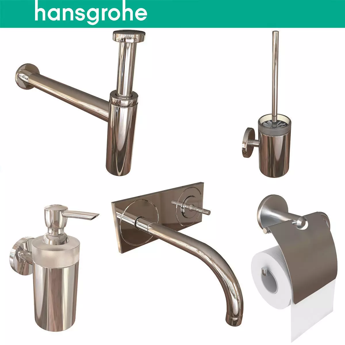3D model of Hansgrohe bathroom setReal size 3D modelUnits: MillimetersCreated in 3ds max 2015, saved to 3ds max 2012Other formats: OBJ in .max archive (converted from V-ray)No third party plugin required.Previews rendered with Vray